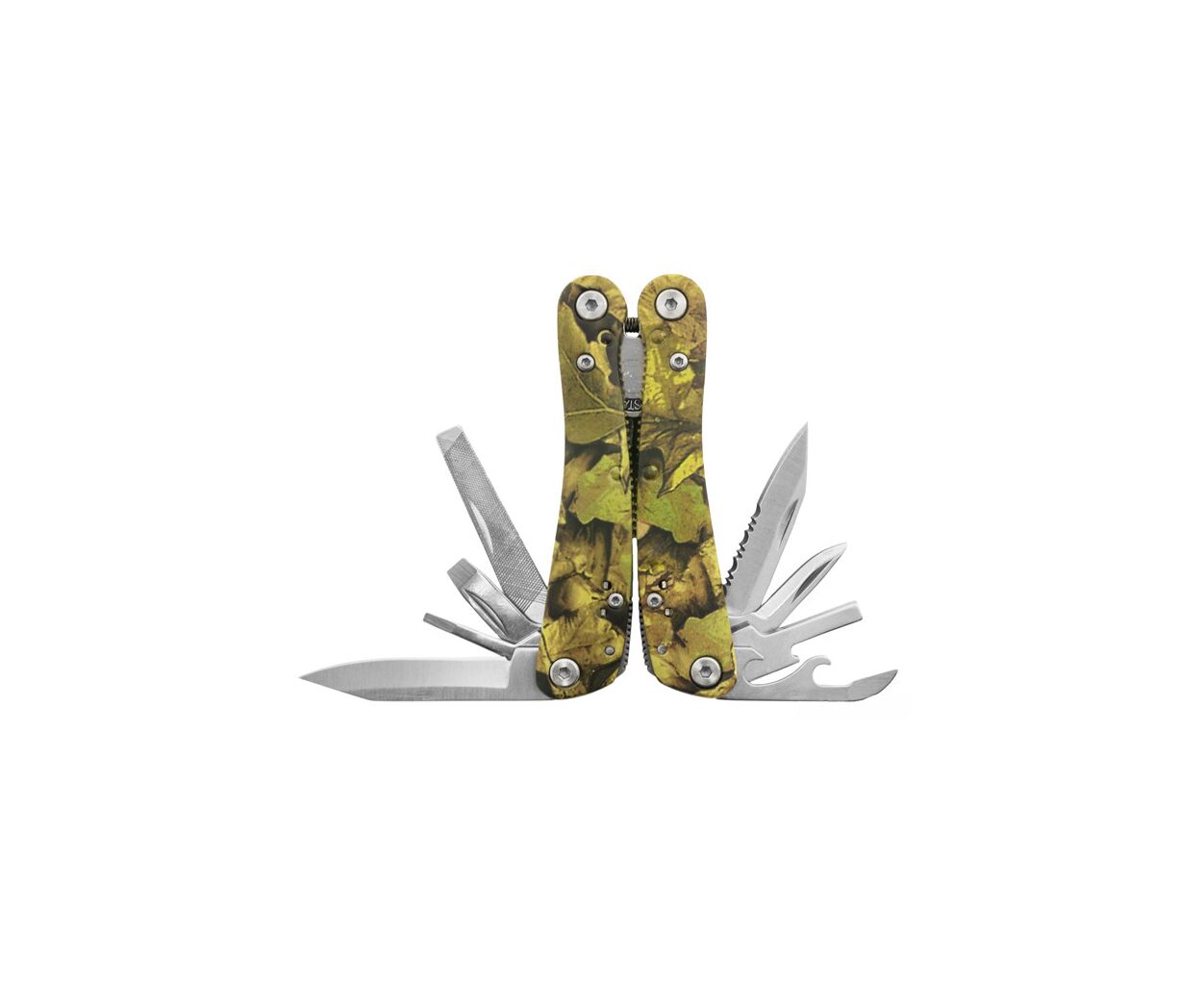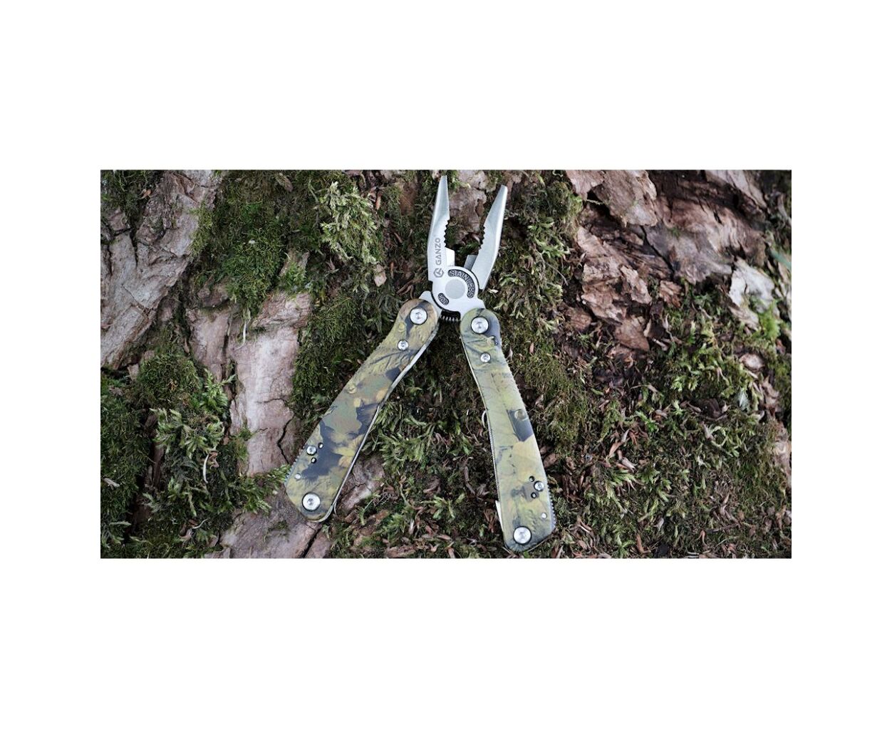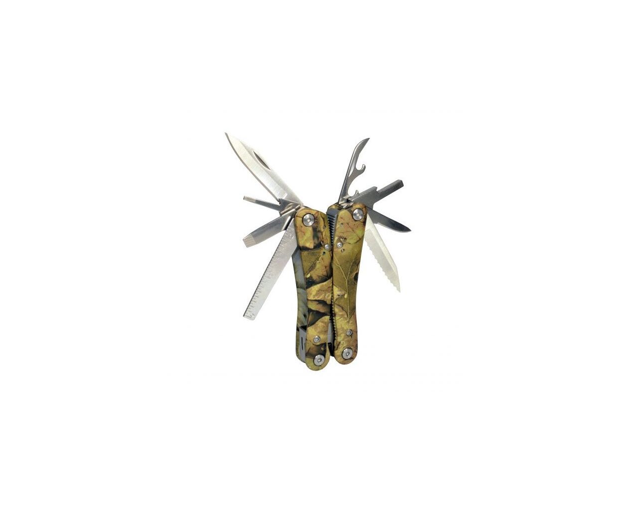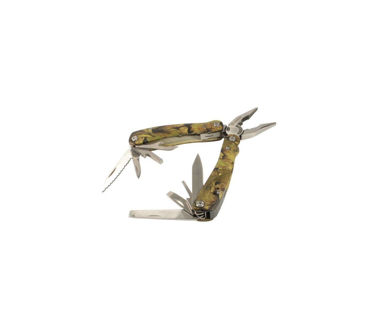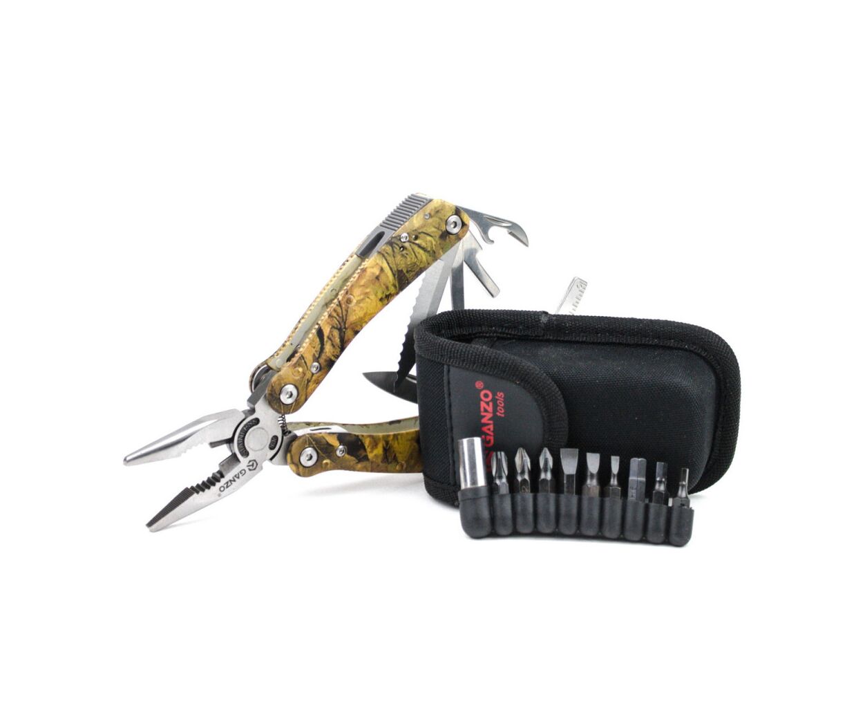 Этот мультитул понравится всем, кто ищет полноразмерный инструмент, оснащенный 22 разнообразными функциями. В комплект входят шило, кусачки, плоская и другие отвертки, ножи (включая серрейторный), держатель для бит, плоскогубцы, линейка, консервный нож, напильник и открывалка для бутылок. Все это позволяет решать широкий спектр задач — от простого открытия консервы до выполнения сложных работ.