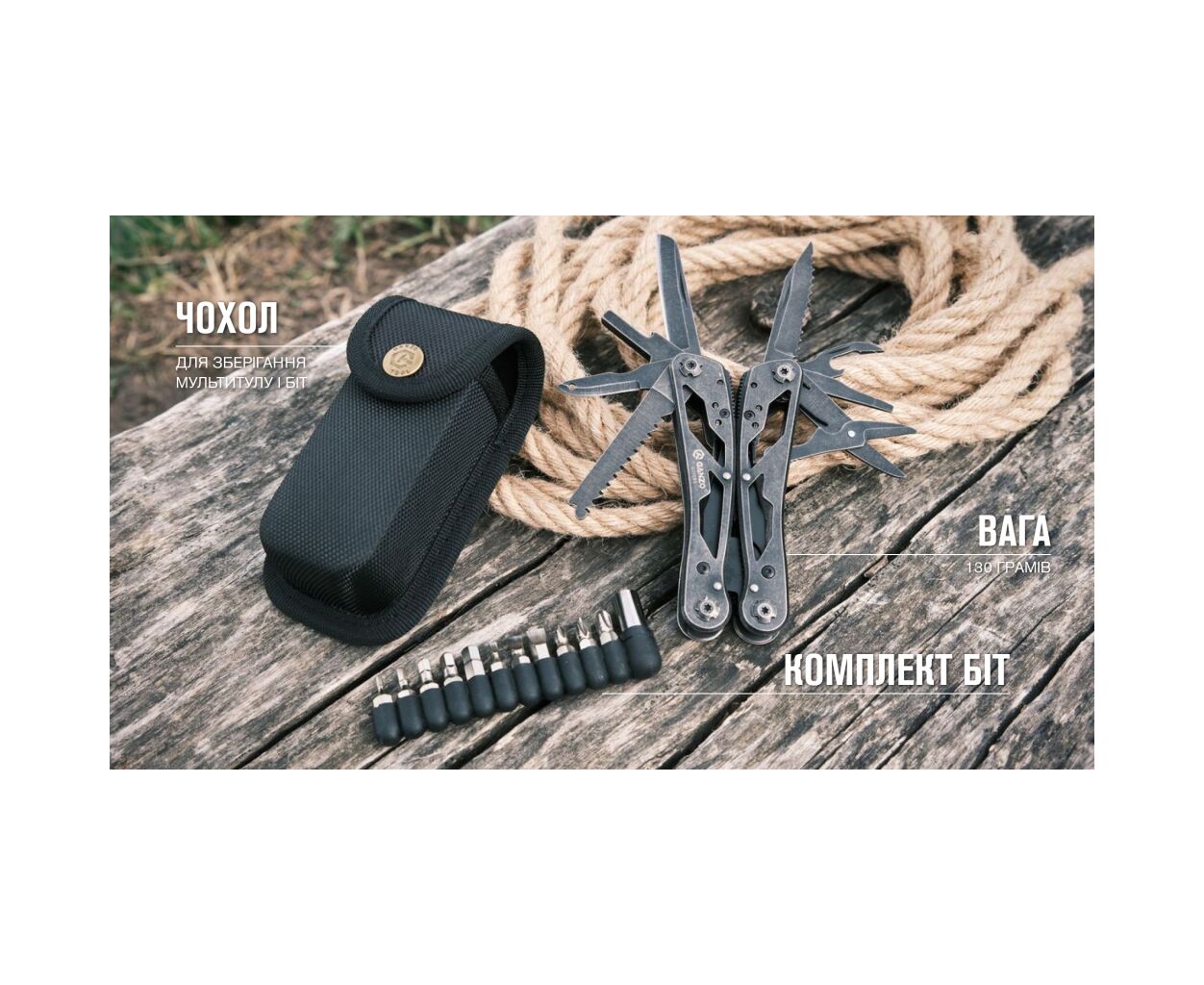 Мультитул G202-BS имеет скелетонизированную конструкцию, что положительно отражается на весе конструкции, составляющем 250 г.