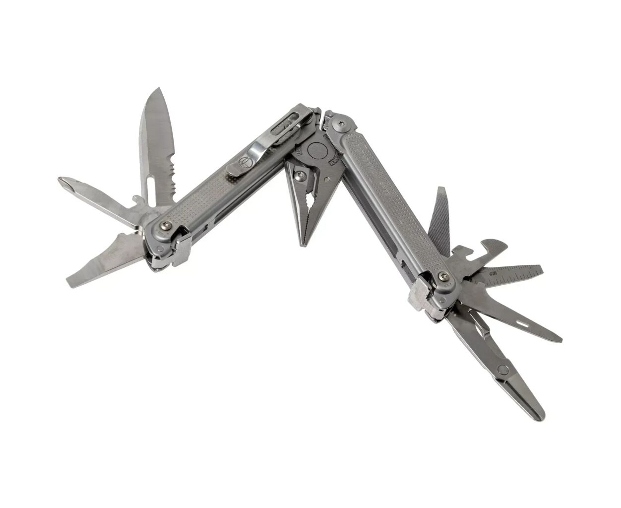 Это устройство считается одним из наиболее всесторонних мультитулов Leatherman, созданных для решения множества обычных задач. Оно включает: острогубцы, плоскогубцы, сменные кусачки высокого качества, сменные кусачки для жесткой проволоки, инструмент для обжима проводов, инструмент для обрезки проводов, универсальный нож 420HC, пружинные ножницы, нож для пакетов, шило, консервный нож, открывашку для бутылок, напильник для дерева/металла, отвертку Филлипс, среднюю отвертку, маленькую отвертку, супер маленькую отвертку, инструмент Pry Tool и 25-миллиметровую линейку. К тому же, устройство оснащено карманным клипом для удобства использования. Если же вам нужна пилка, рекомендуем рассмотреть модель Leatherman Free P4 и сравнить какой мультитул вам больше по душе - Free P2 или P4 .