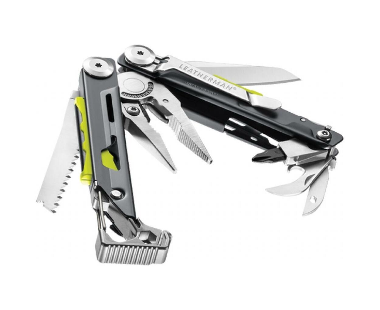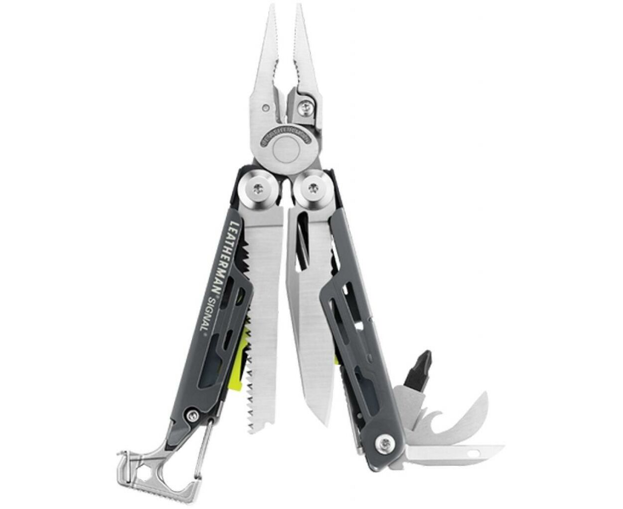 Универсальный мультитул для путешествий Leatherman Signal станет надежной опорой в суровых условиях дикой природы. Компактная сборка этого набора включает в себя 19 разнообразных инструментов, среди которых есть уникальные - молоток, алмазное точило, экстренный свисток и огниво.