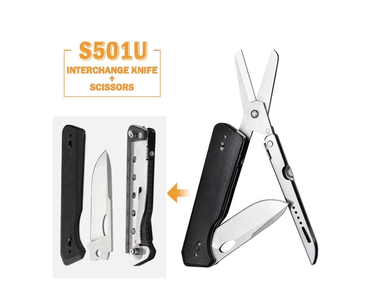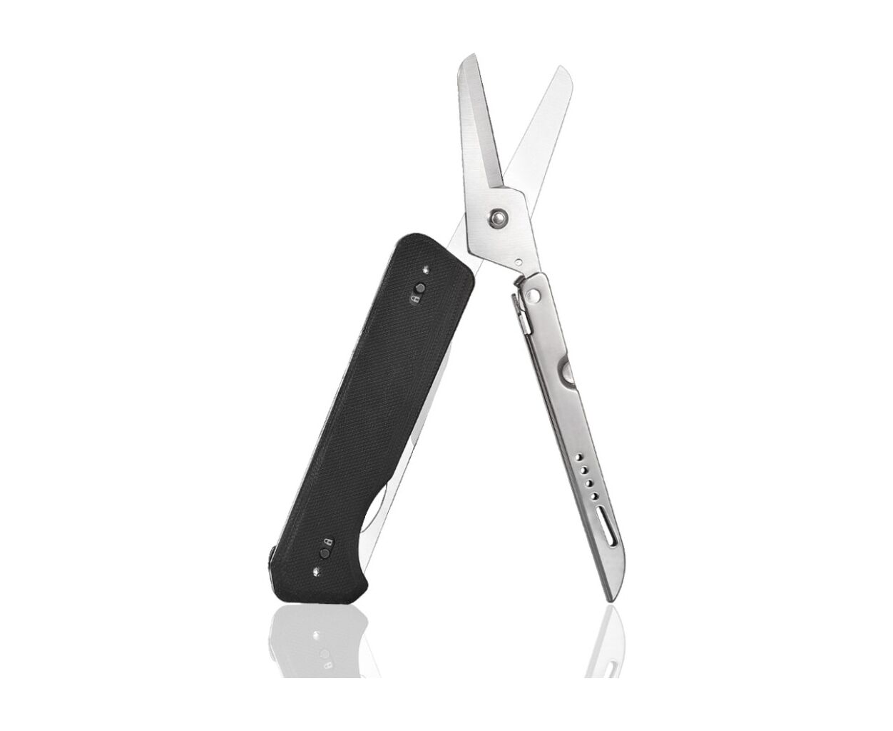 Нож имеет клинок с формой drop point, выполненный из стали 8Cr13MoV, известной своей стойкостью к износу и коррозии. Прямое заточение обеспечивает идеальный рез, а надёжный замок Liner lock добавляет безопасности. Ножницы изготовлены из немецкой стали DIN 1.4116, которая гарантирует их прочность и долговечность. Они позволяют легко и безопасно выполнять разнообразные задачи.