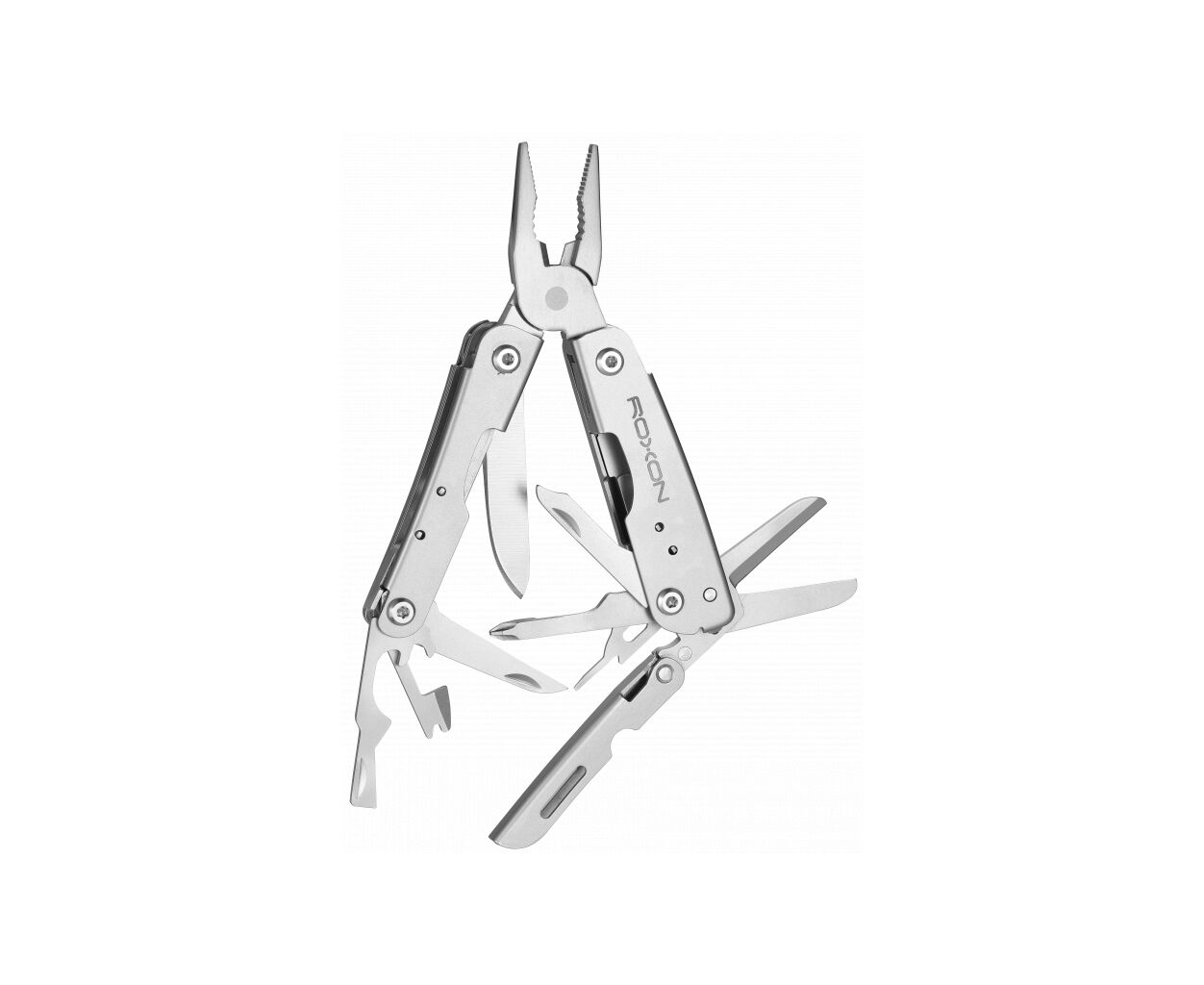 Мультиинструмент Roxon M2 характеризуется небольшими габаритами и ультралёгким весом. Он имеет клипсу, чтобы можно было прикрепить изделие, например, к карману. Удобно переносить, легко использовать. Компактно складывается, объединяет в себе 14 инструментов. Сюда вошли такие приспособления, как: