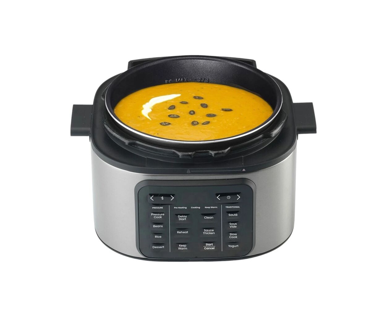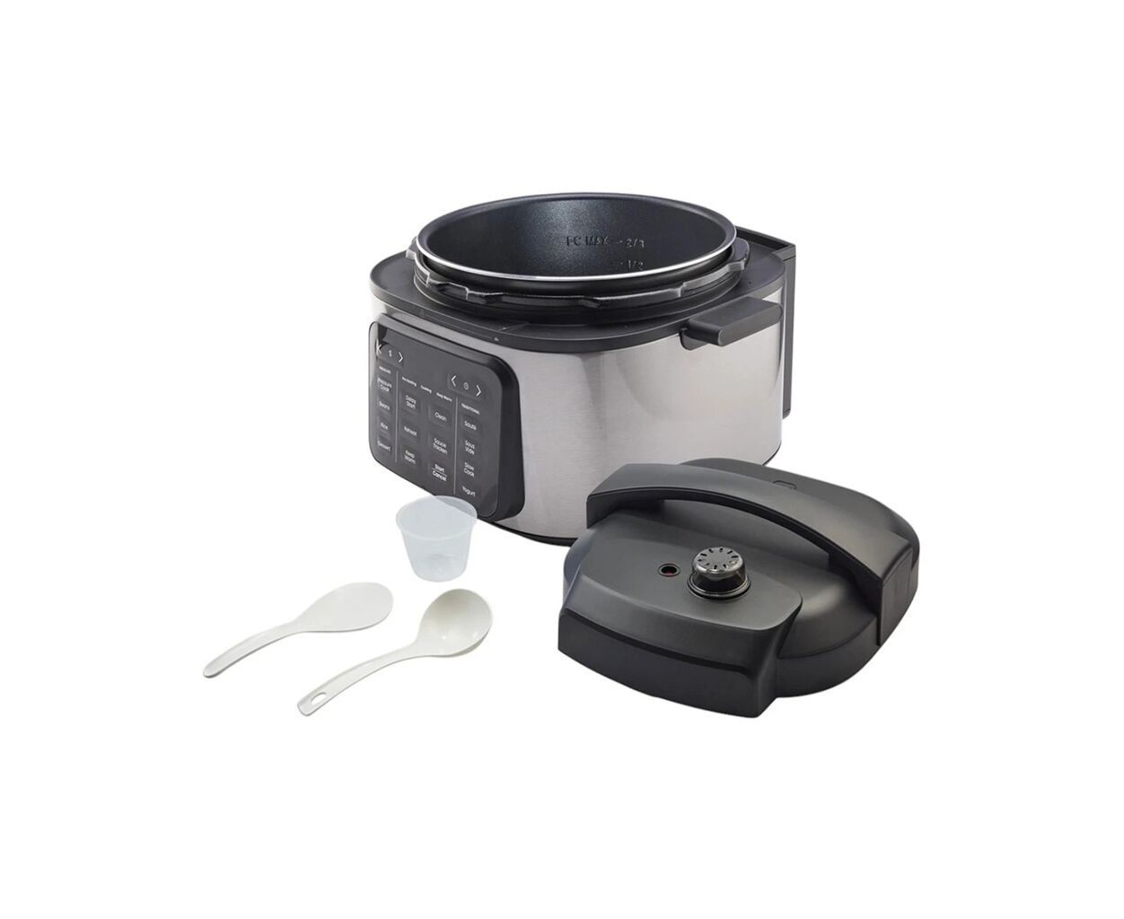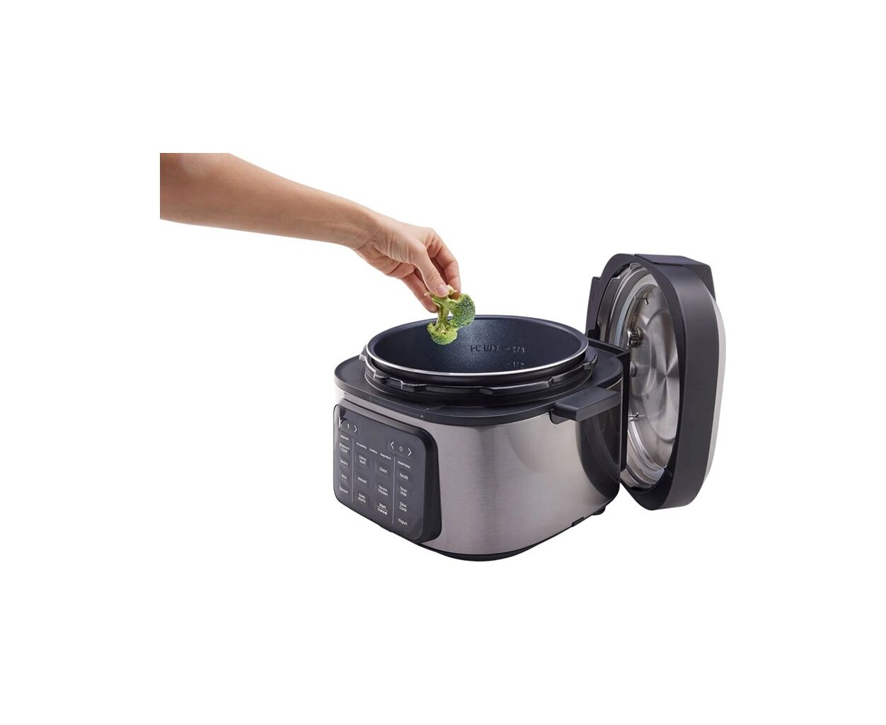 мультиварка - скороварка, 1500 вт вт, объем чаши - 6 л, тип внутреннего покрытия - антипригарное, алюминий, количество программ - 10, Управление - сенсорное, габариты - 36 х 36.6 х 30 см, вес - 7.2 кг, черный, нержавеющая сталь