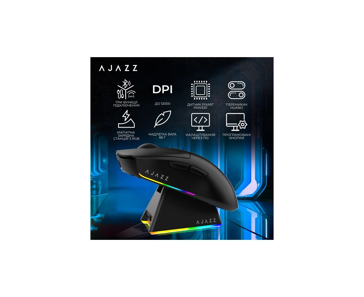 Описание Мышка Ajazz AJ139 V2 MC Wireless/Bluetooth/USB Black (AJ139-V2-MC-B)