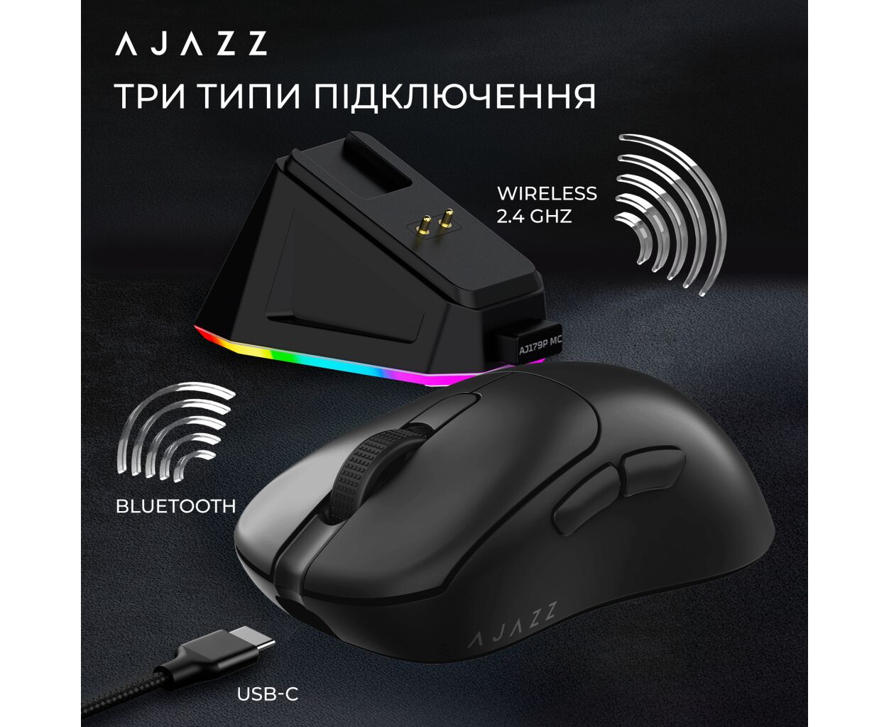 Описание Мышка Ajazz AJ179P MC Charging Dock Wireless/Bluetooth/USB Black (AJ179P-MC-B)