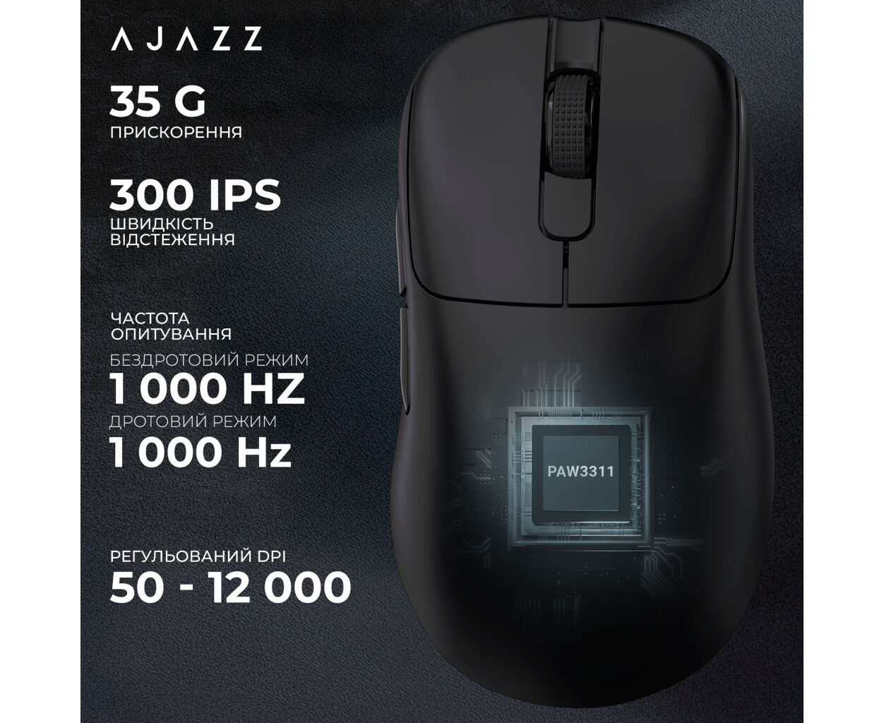 Характеристики Мышка Ajazz AJ179P MC Charging Dock Wireless/Bluetooth/USB Black (AJ179P-MC-B)