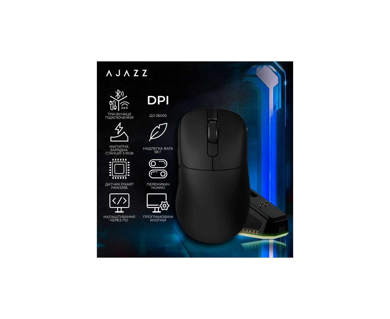 Характеристики Мышка Ajazz AJ179PRO Wireless/Bluetooth/USB Charging Dock Black (AJ179-PRO-B)