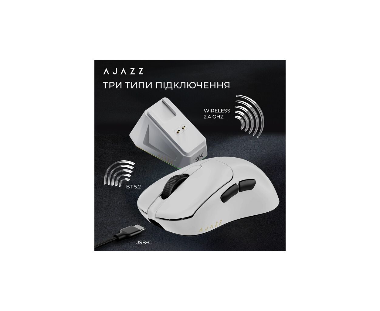 Описание Мышка Ajazz AJ179PRO Wireless/Bluetooth/USB Charging Dock White (AJ179-PRO-W)