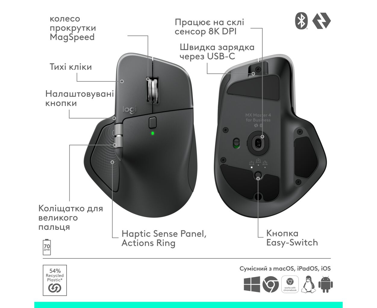 Характеристики Мышка Logitech MX Master 4 for Business Wireless/Bluetooth Graphite (910-007617)