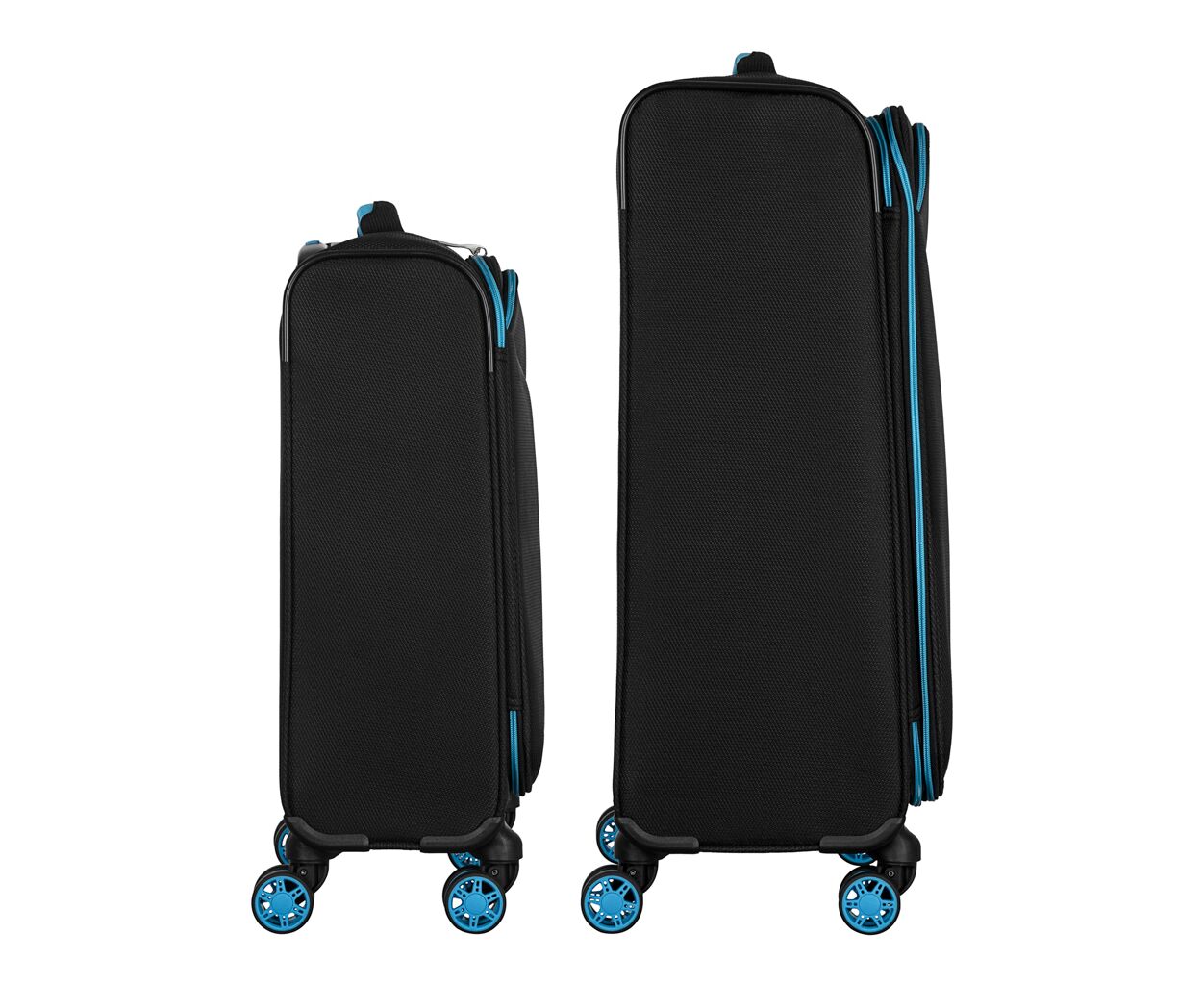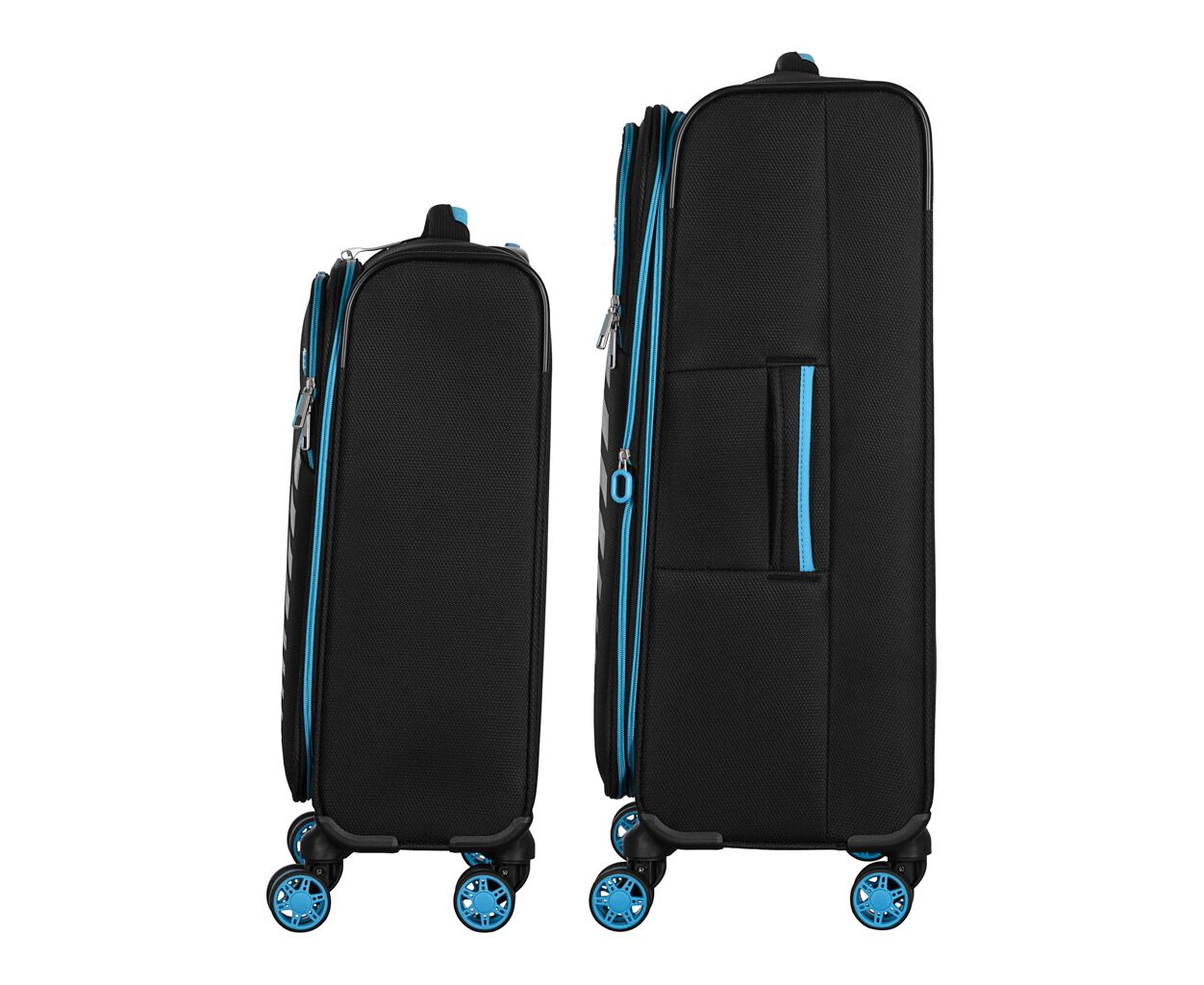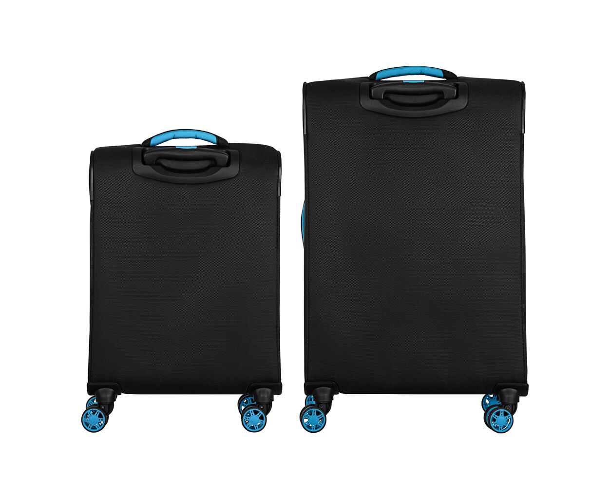 Серия - Trek, количество чемоданов в наборе - 2 чемодана, Материал - полиэстер, размер чемодана - маленький, средний, Объем - 64 л, 78 л, количество колесиков - 4, Цвет - черный