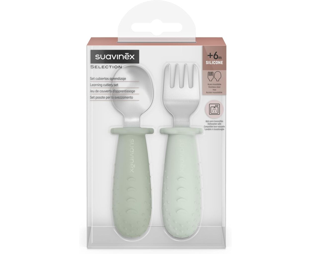 Набор детской посуды Suavinex Colour Essence столові прибори зі сталі (ложка, виделка) зелені (402912)