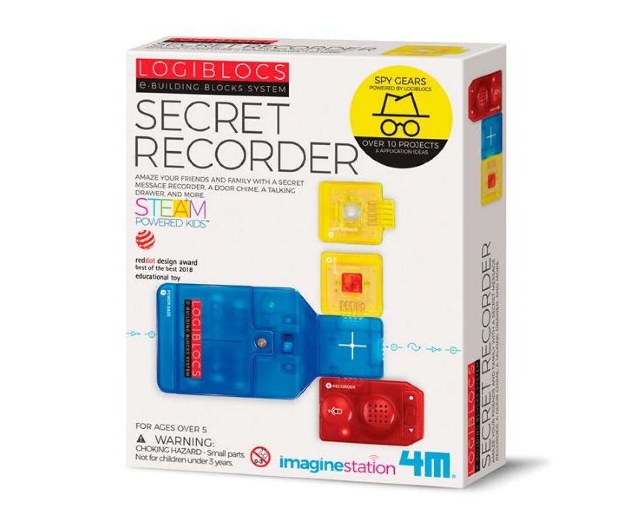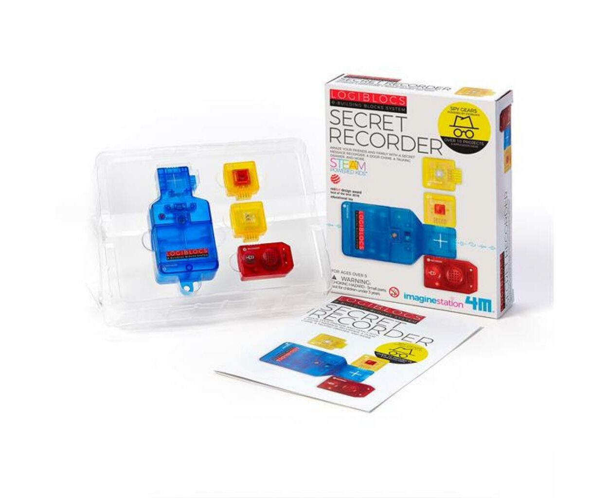Набор шпиона 4M Записывающие устройства - стартовый набор для детей, чтобы исследовать мир Logiblocs.В комплекте 4 соединяющих между собой модуля: блок питания, кнопка, датчик света, записывающее устройство и подробный буклет с инструкциями.Что можно сделать из этого? Более 10 проектов и приложений, таких секретное записывающее устройство, дверной звонок, говорящий ящик и другие.С этим набором для исследований можно узнать много нового из физики. Дайте волю своему воображению, проявите таланты в области электроники.Все блоки набора работают в сочетании друг с другом. Объедините этот комплект с другими из серии Logiblocs, чтобы расширить грани своих экспериментов.Комплект 4M Записывающие устройства отлично подходит для занятий в учебных заведениях, центрах развития, в том числе по методике STEAM.Наборы из серии Logiblocs помогают понять область автоматики и электронных систем вокруг нас. От светофоров до космических станций, от автомобилей до компьютеров - все в современном мире высоких технологий управляется так же, как в Logiblocs.Каждый пластиковый модуль с электроникой внутри имеет свою отдельную функцию, и все они могут работать вместе. Соединяя модули в разных комбинациях, дети будут с интересом создавать полезные системы управления и гаджеты. Например, можно оборудовать двери сигнализацией или автоматически записывать и воспроизводить сообщения.Комплекты для развития Logiblocs имеют успех в сфере образования и используются в более чем 4000 школах в Великобритании, а также во всех странах, где есть учебные программы по электронике.Дети лучше понимают электронику с этими наборами и, пройдя пошаговые инструкции, получают результаты в виде готовых работающих устройств.Logiblocs - это «кибер-блоки будущего», увлекательные электронные модули, которые помогают понять мир IT в веселой и легкой форме.