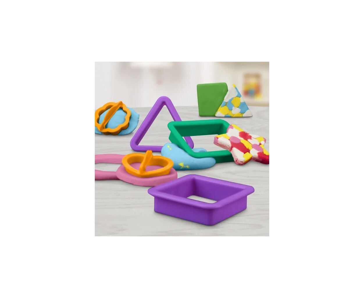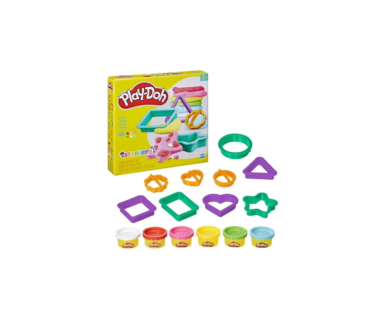 В комплект входят баночки с яркой массой Play-Doh и специальные формочки, которые помогут ребенку научиться распознавать и воспроизводить основные геометрические формы. Материал легко моется, не прилипает к рукам и не оставляет следов, поэтому игра будет приятной и безопасной.