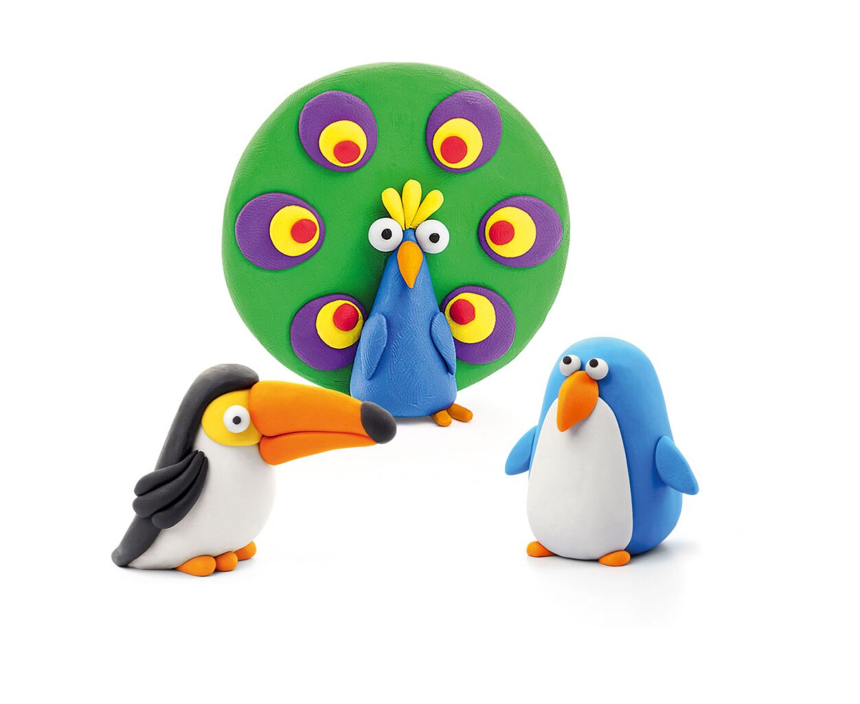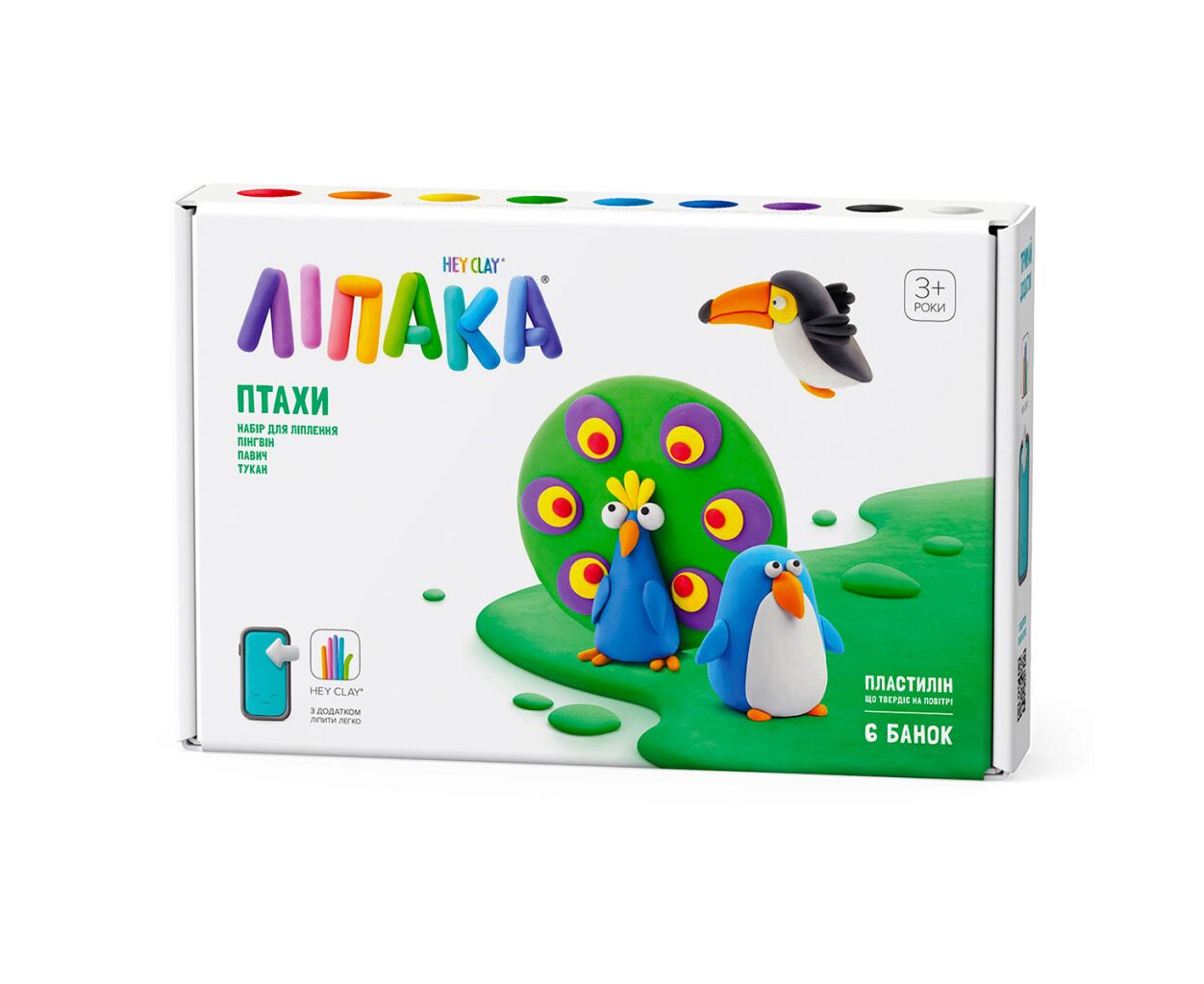 Набор самозатвердевающего пластилина ЛИПАКА – ПТИЦЫ: ПИНГВИН, ПАВЛИН, ТУКАН – развлечет и детей и взрослых. С помощью анимационных инструкций в приложении HEY CLAY, Вы сможете слепить 3 забавных птичек. Пластилин твердеет на воздухе за 24 часа, после чего можно играться созданными фигурками.