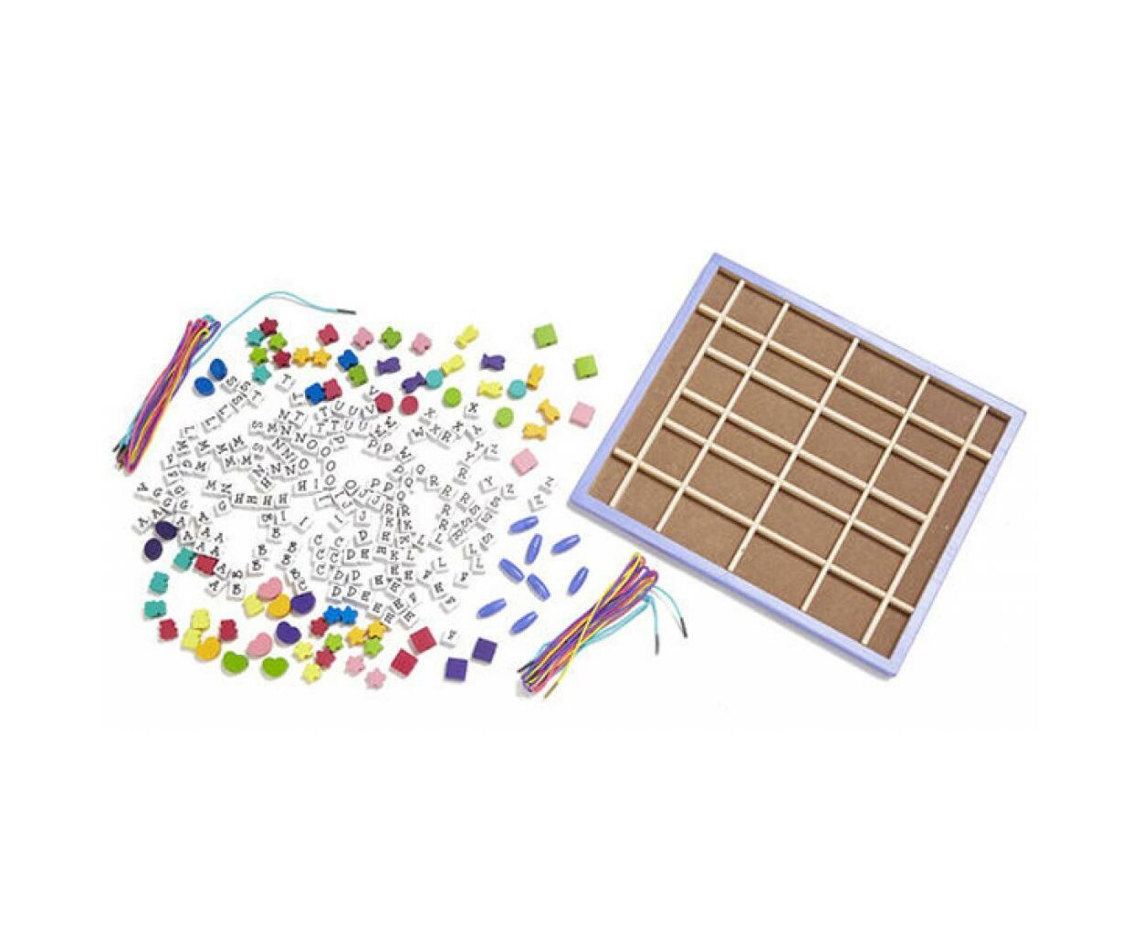 Сколько вариантов красивых украшений может собрать ваш маленький ювелир? Множество деревянных бусин, великолепные формы и яркие нитки упакованы в удобную деревянную коробку, чтобы дети легко могли создавать сказочные браслеты и ожерелья.