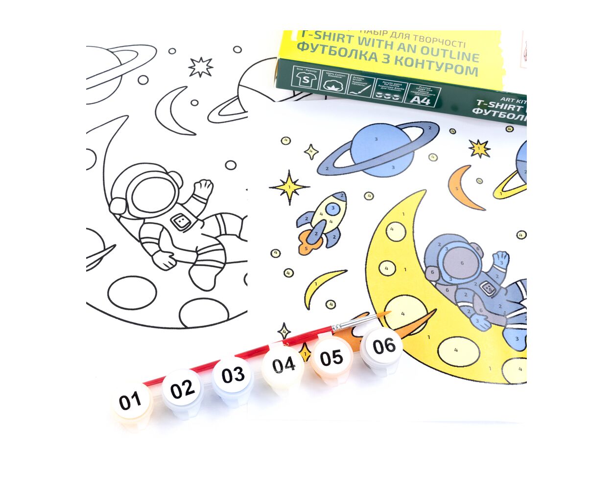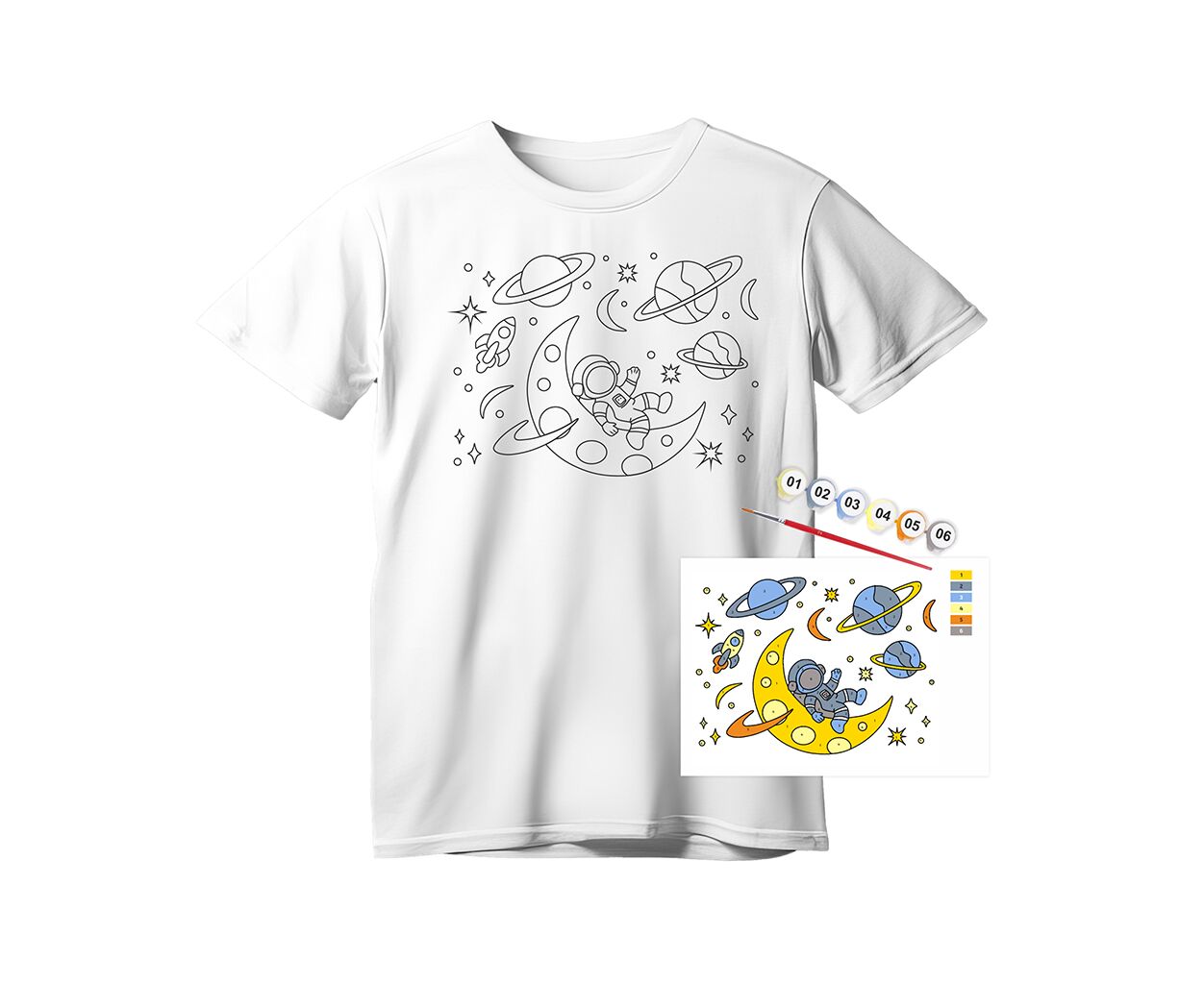Набор для творчества Rosa футболка-розмальовка, Space Adventures, бавовна 100, розмір S (4823098543817)