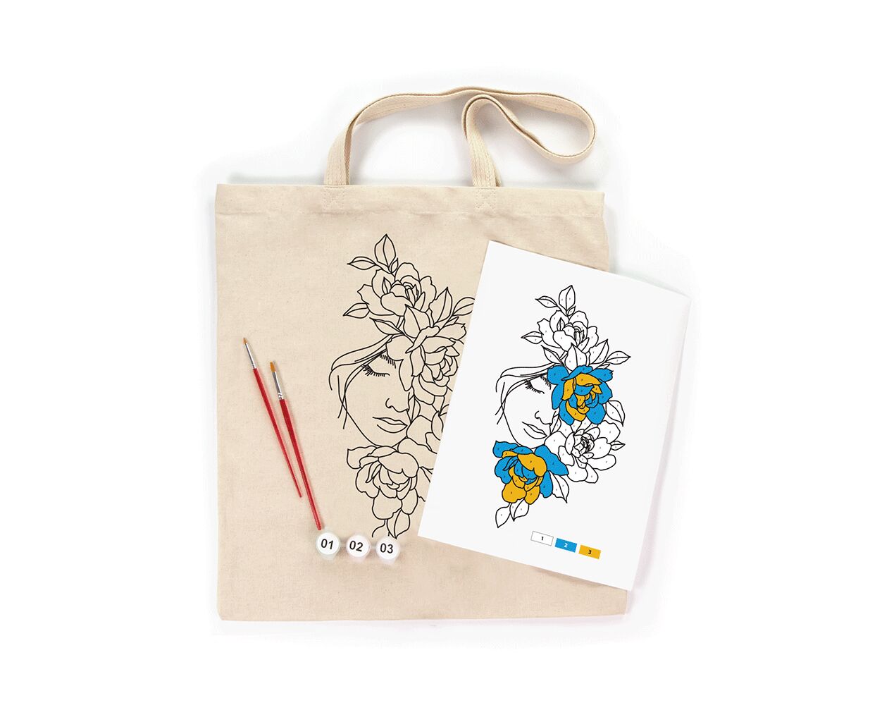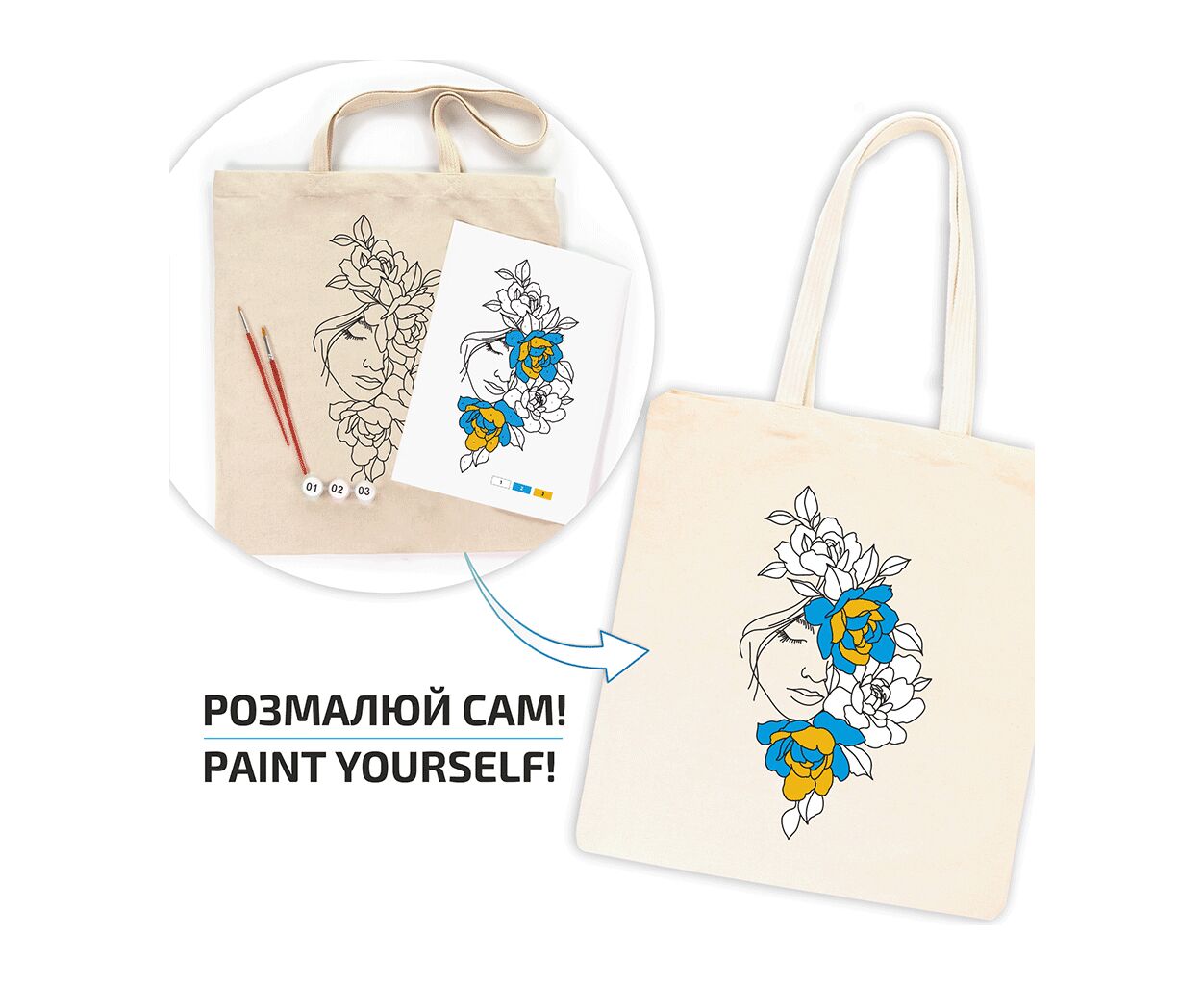 - сумка, краски, кисти, схема, этикетка с пошаговой инструкцией