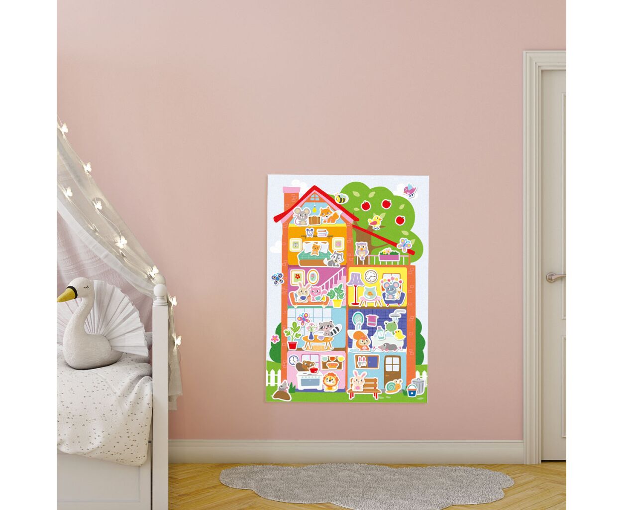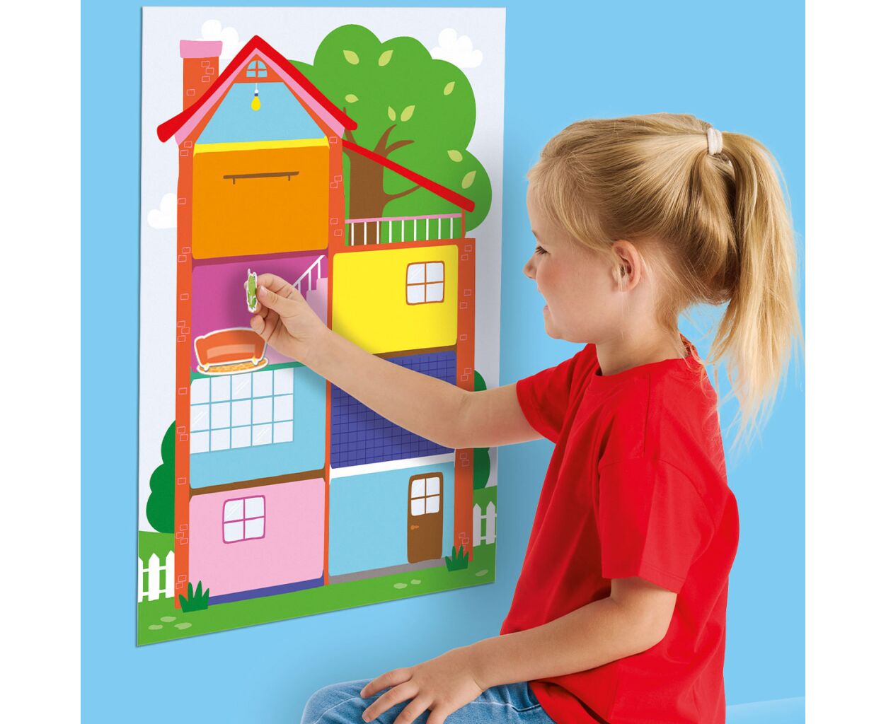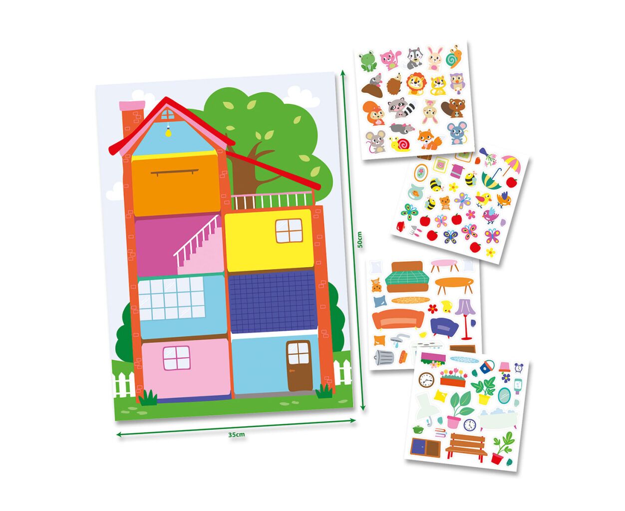 Набор для творчества с наклейками серии 'My first' – Уютный дом – это замечательный способ познакомить малышей с предметами быта и домашним пространством в игровой форме. Большой постер с изображением дома можно украсить яркими наклейками, размещая их в соответствующих местах. Это помогает детям лучше понимать, что находится в каждой комнате, и развивает логику и воображение.