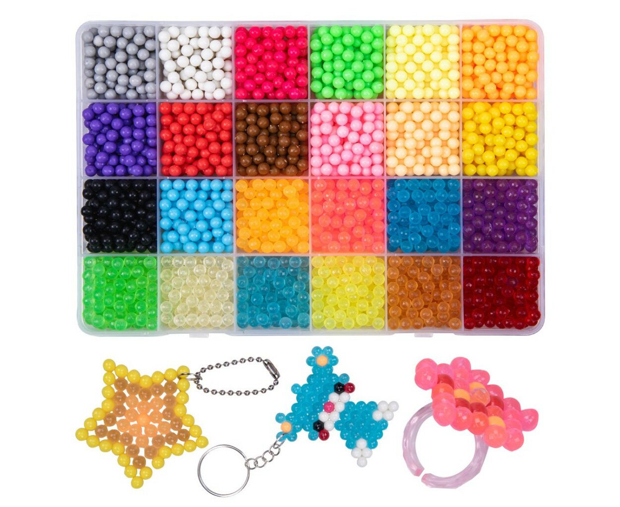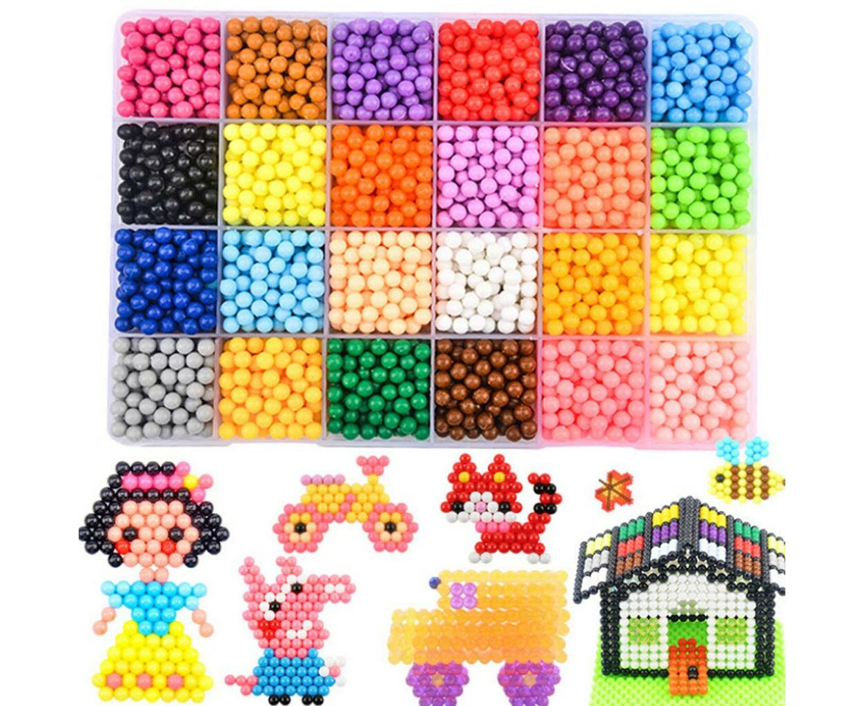 - Пластиковый бокс с ячейками Количество цветов — 24 Количество шариков - 3200 (диаметром 4 мм) Набор аксессуаров из 26 предметов Инструкция на украинском языке