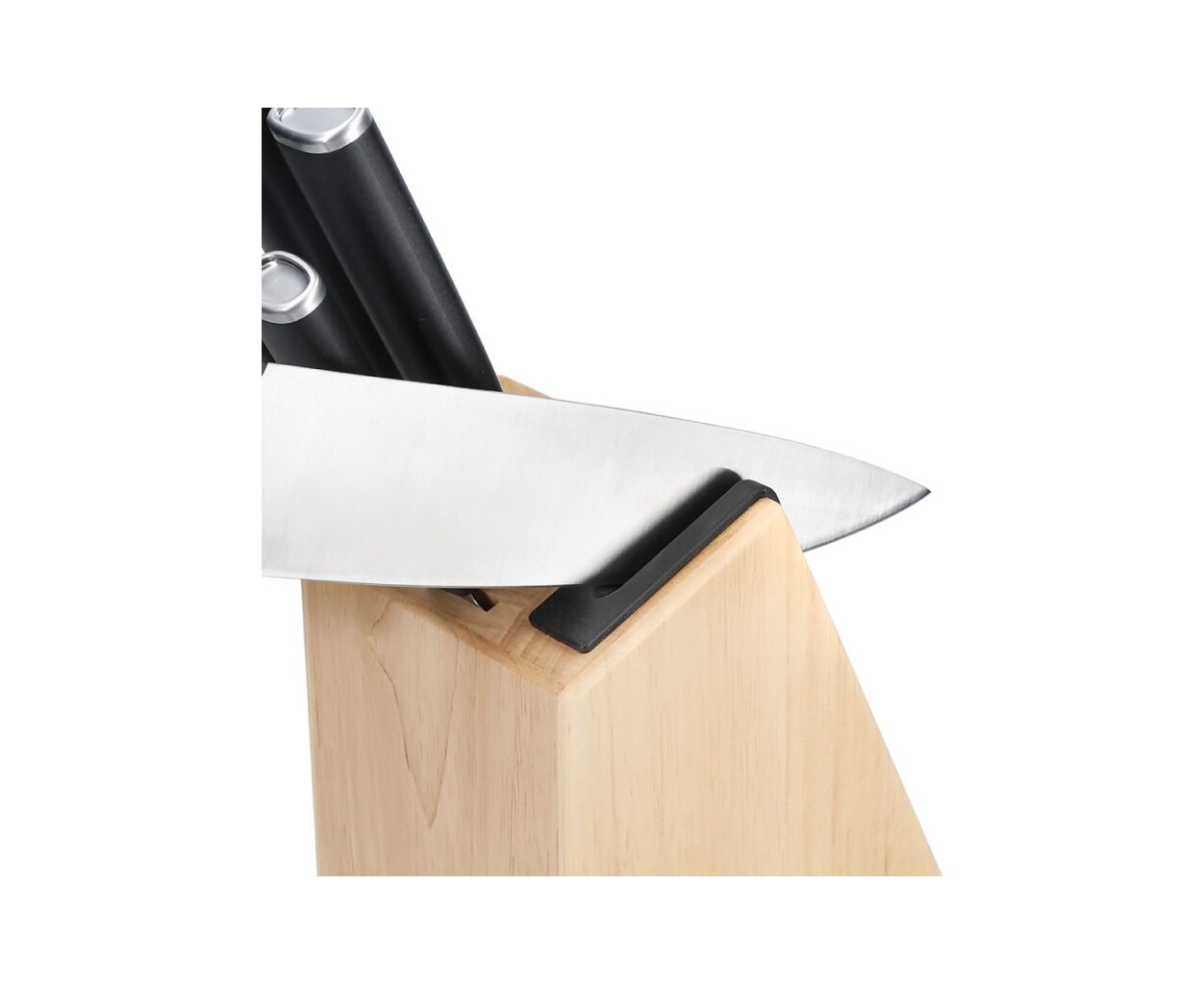 Назначение - универсальный, Тип набора - с подставкой, Материал лезвия - углеродистая сталь, пластик, черный