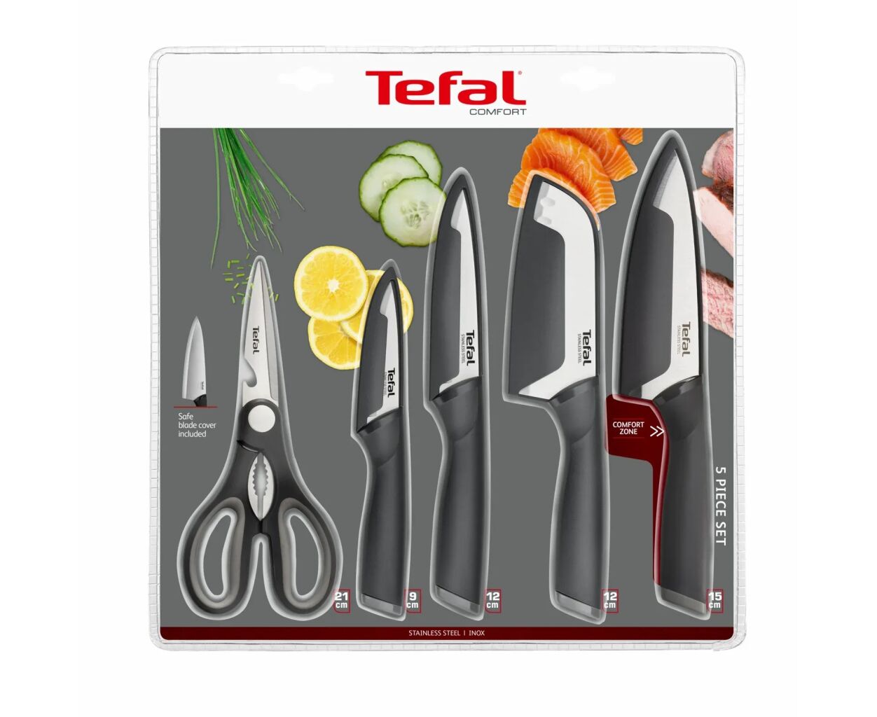 Набор ножей Tefal Comfort, 5 предметів, чорний (K2215S55)
