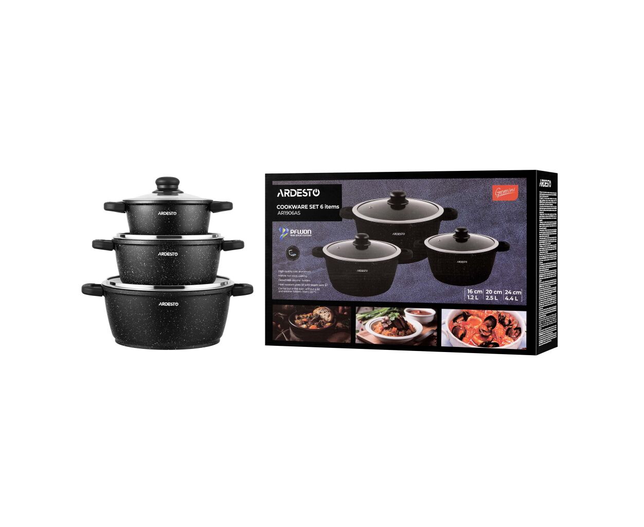 Набор посуды Ardesto Gemini Anzio, 6 предметів, чорний (AR1906AS)