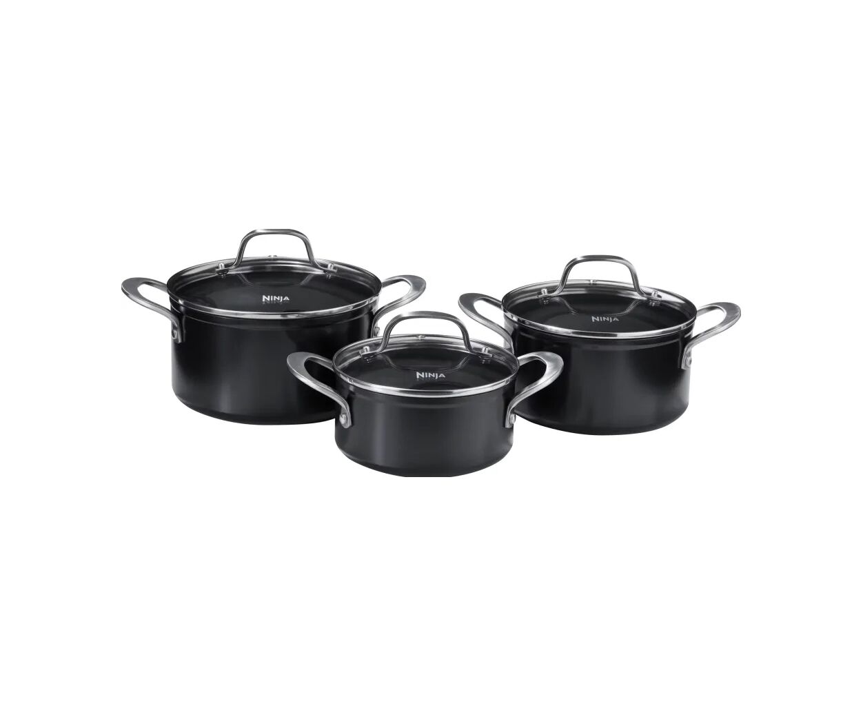 С набором кастрюль Ninja ZEROSTICK Essentials из 3 предметов C13000DE можно охватить весь рацион большой семьи. Обжаривайте овощи, варите супы, тушите мясо или готовьте соусы — набор из трех кастрюль 16 см, 18 см, 20 см идеально подходит для любых блюд. Антипригарное покрытие Zerostick позволяет готовить без масла и сохранять естественный вкус продуктов. Ручки из нержавеющей стали остаются холодными, а стеклянные крышки удерживают влагу и аромат для правильной термической обработки.