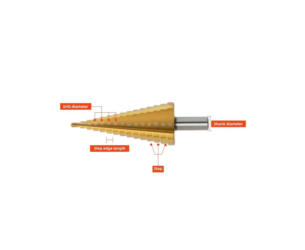 Описание Набор сверл Deli ступенчатых 3 шт. 4-12\20\32 мм (EDH-JTZ0003-ED1)