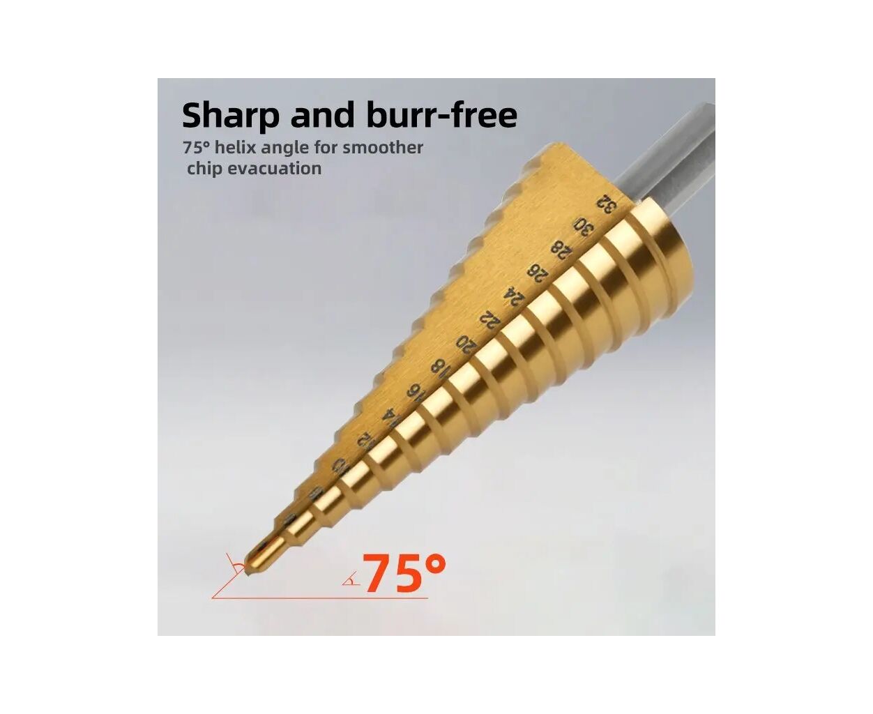 Характеристики Набор сверл Deli ступенчатых 3 шт. 4-12\20\32 мм (EDH-JTZ0003-ED1)
