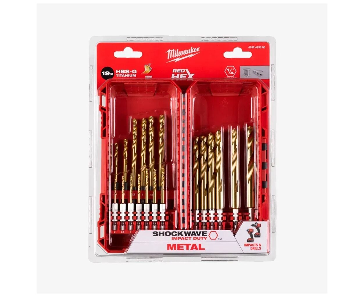 Набор сверл Milwaukee по металлу PACKOUT RedHEX HSS-G TiN, 19шт (4932493866)
