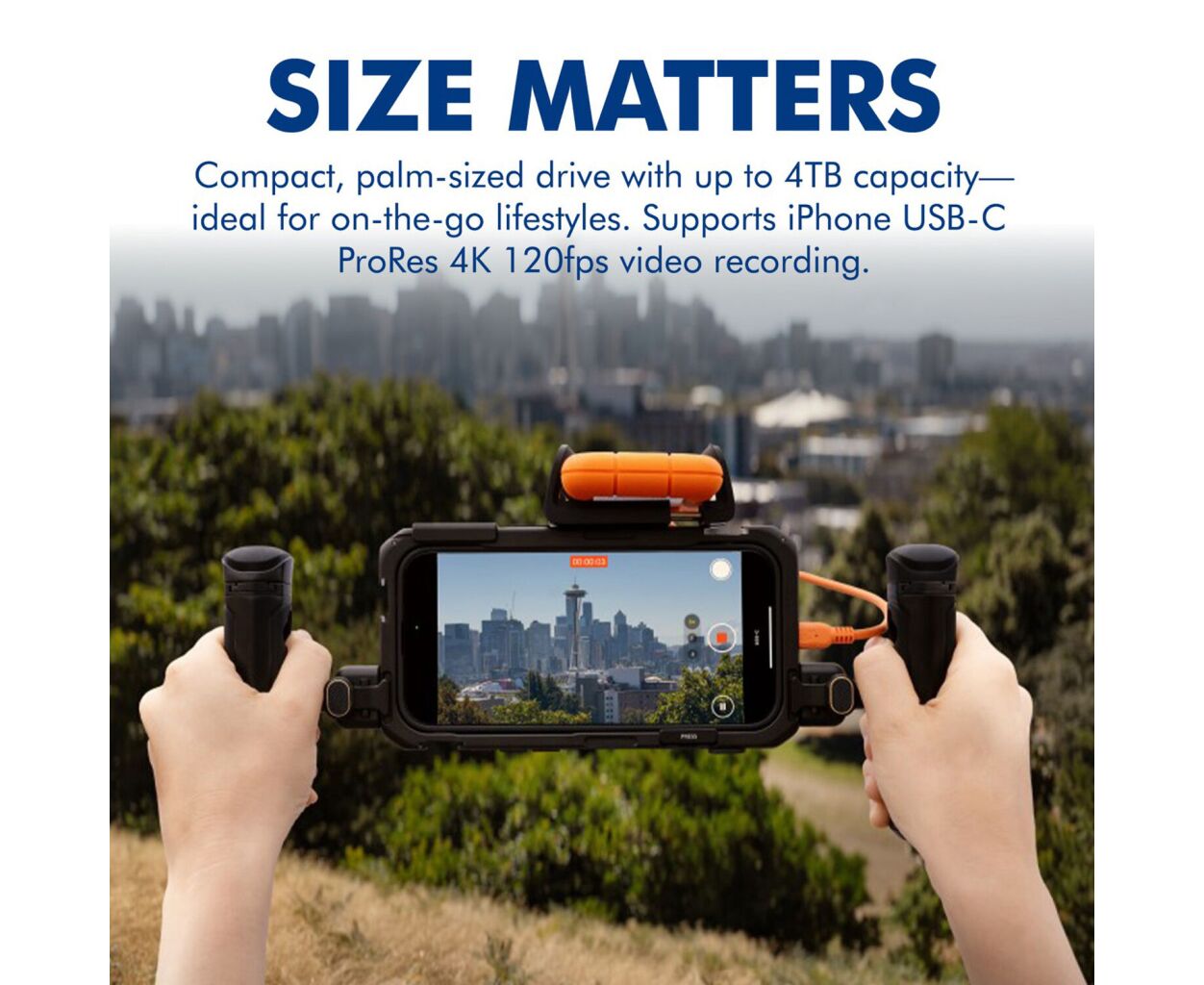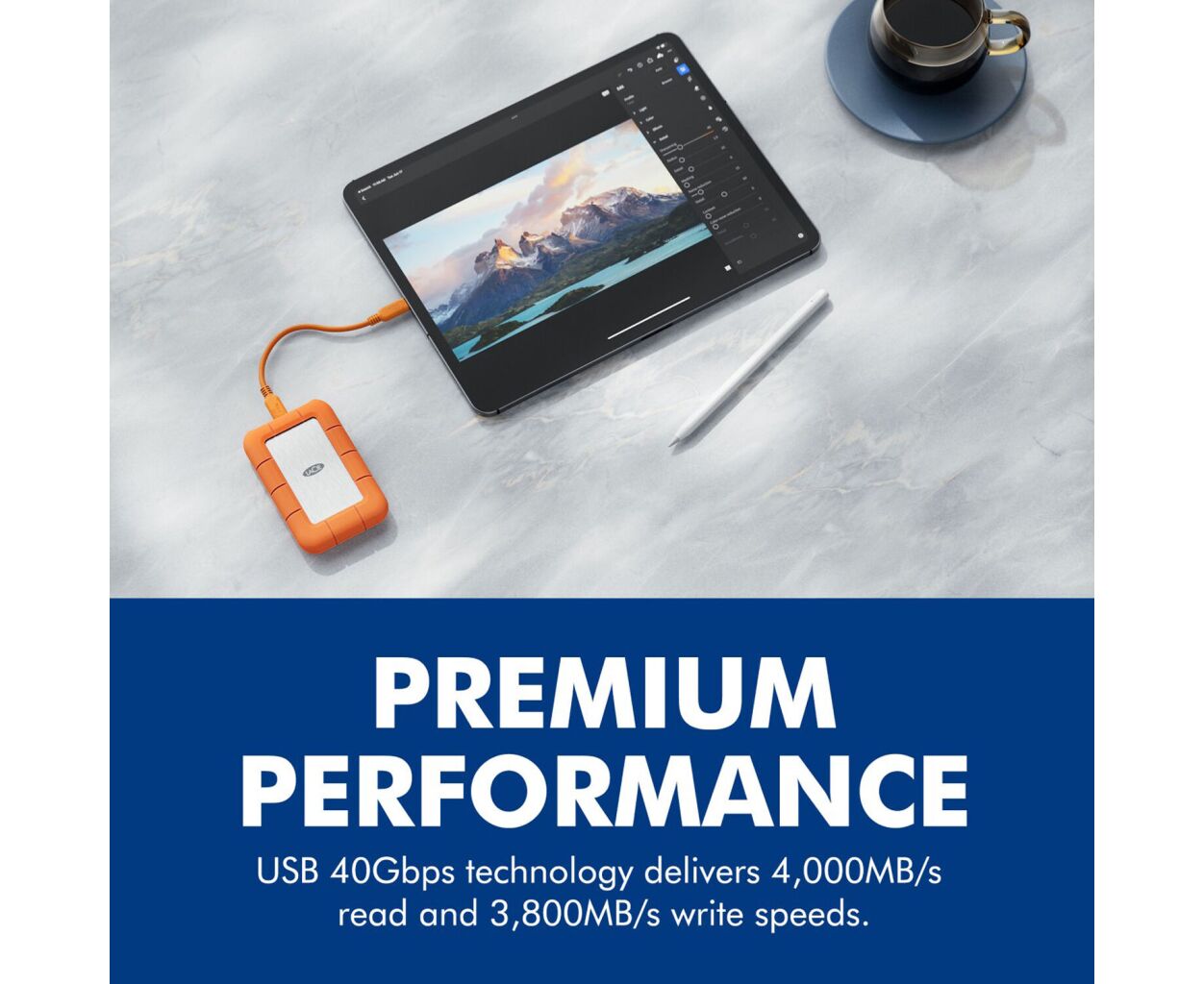 Серия - Rugged, 4 TB, 3D NAND, portable, Thunderbolt 3, Скорость чтения - 4000 Mb/s, Скорость записи - 3800 Mb/s, 105.34 х 66.87 х 17.33 мм, 108 г, серебристый, оранжевый