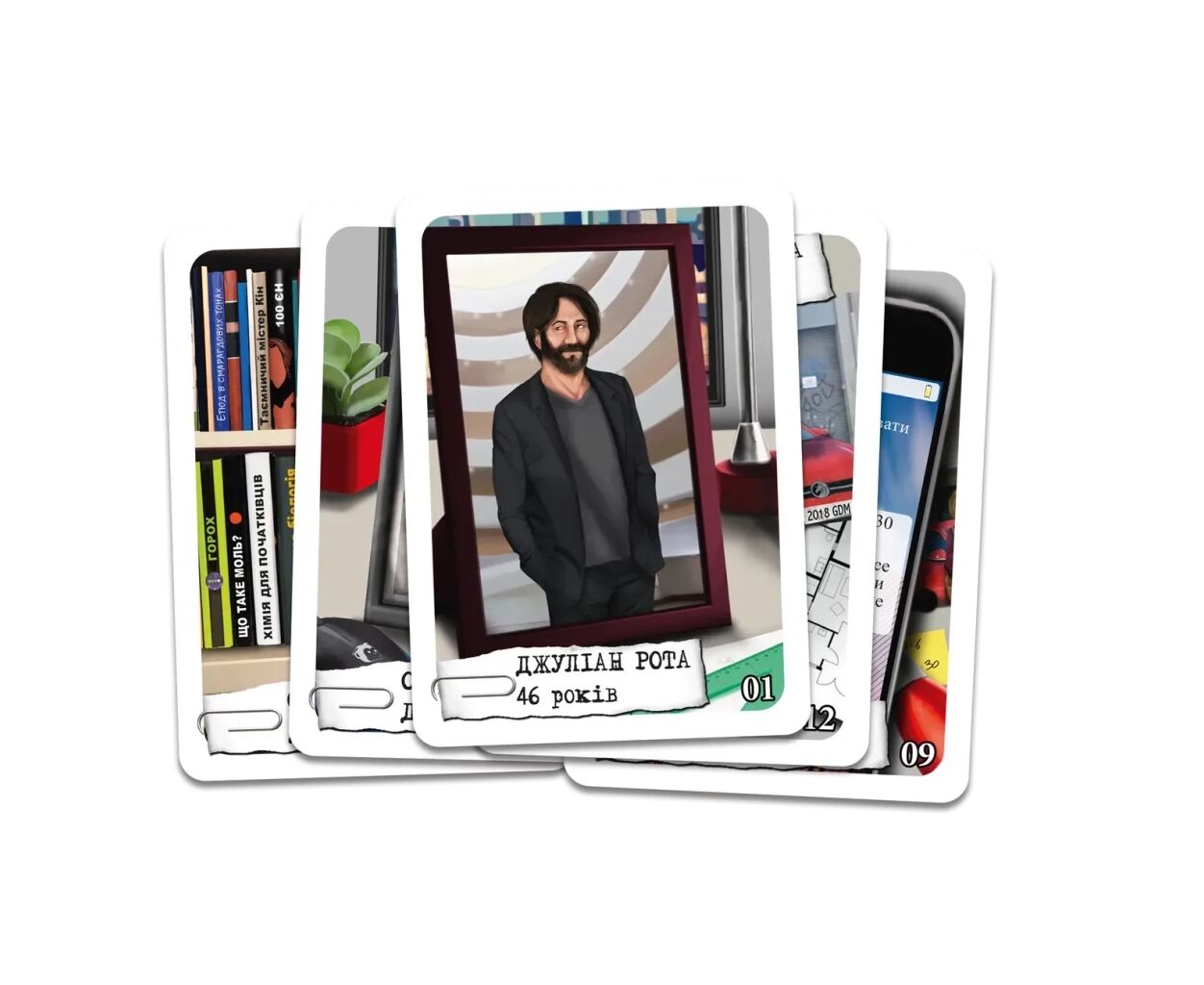 Тематически игра отражает детективные и карточные элементы, идеально подходит для развлечений в компании. Компоненты включают 32 карты и детальную инструкцию, которые объединяют множество механик в одной игре. Игра доступна на украинском языке, что делает её ещё ближе и понятнее для широкой аудитории поклонников детективных историй.