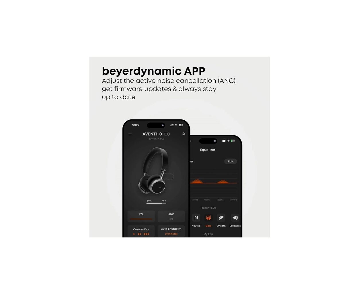 Автономная работа составляет более 60 часов без ANC или до 40 часов с активным шумоподавлением, обеспечивая длительное использование без необходимости частой зарядки. Легкий контроль и управление всеми индивидуальными настройками осуществляется через фирменное приложение beyerdynamic.