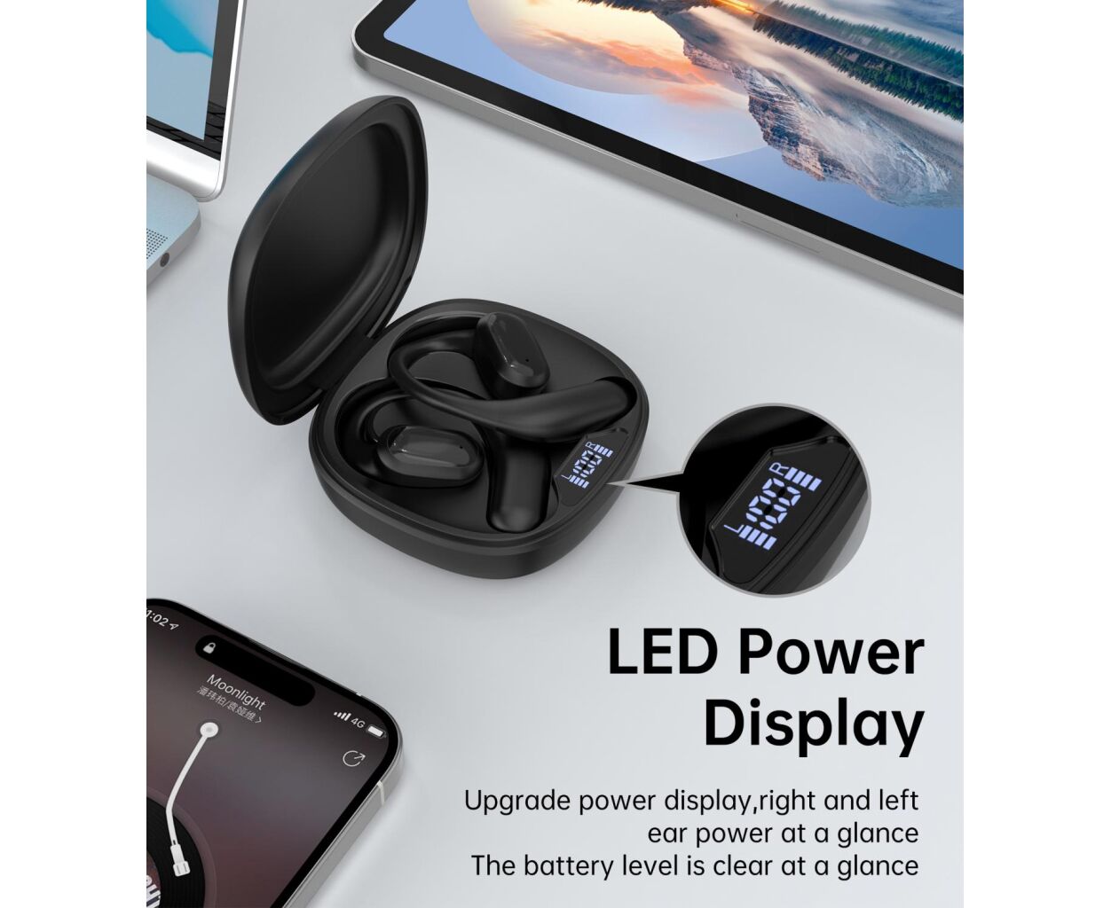 Описание Наушники Choetech Open-ear з LED дисплеєм Black (BH-T25-BK)