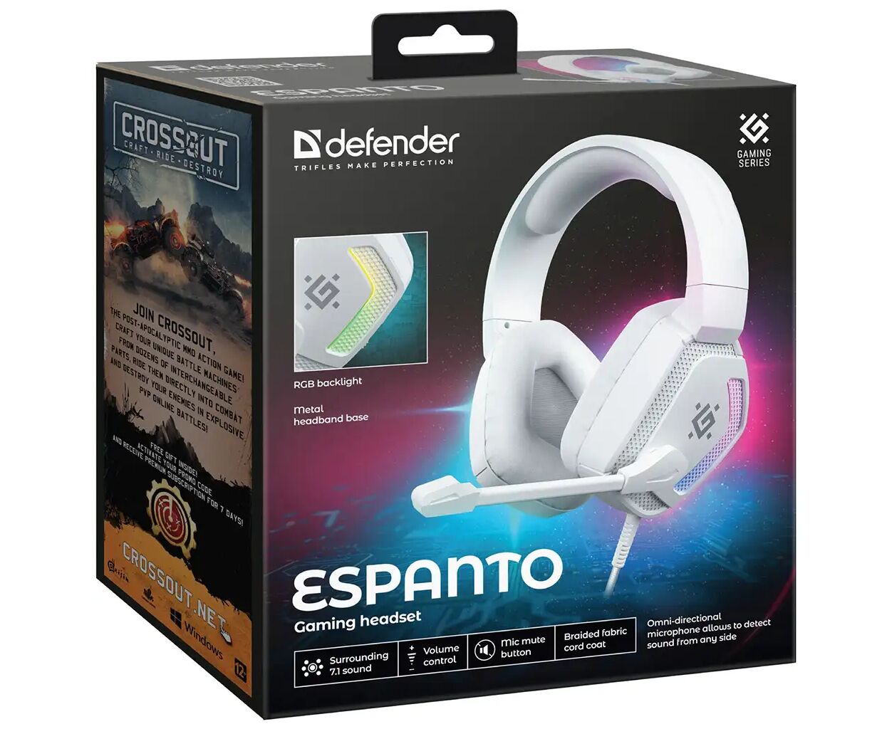 Описание Наушники Defender Espanto RGB USB White (62470)