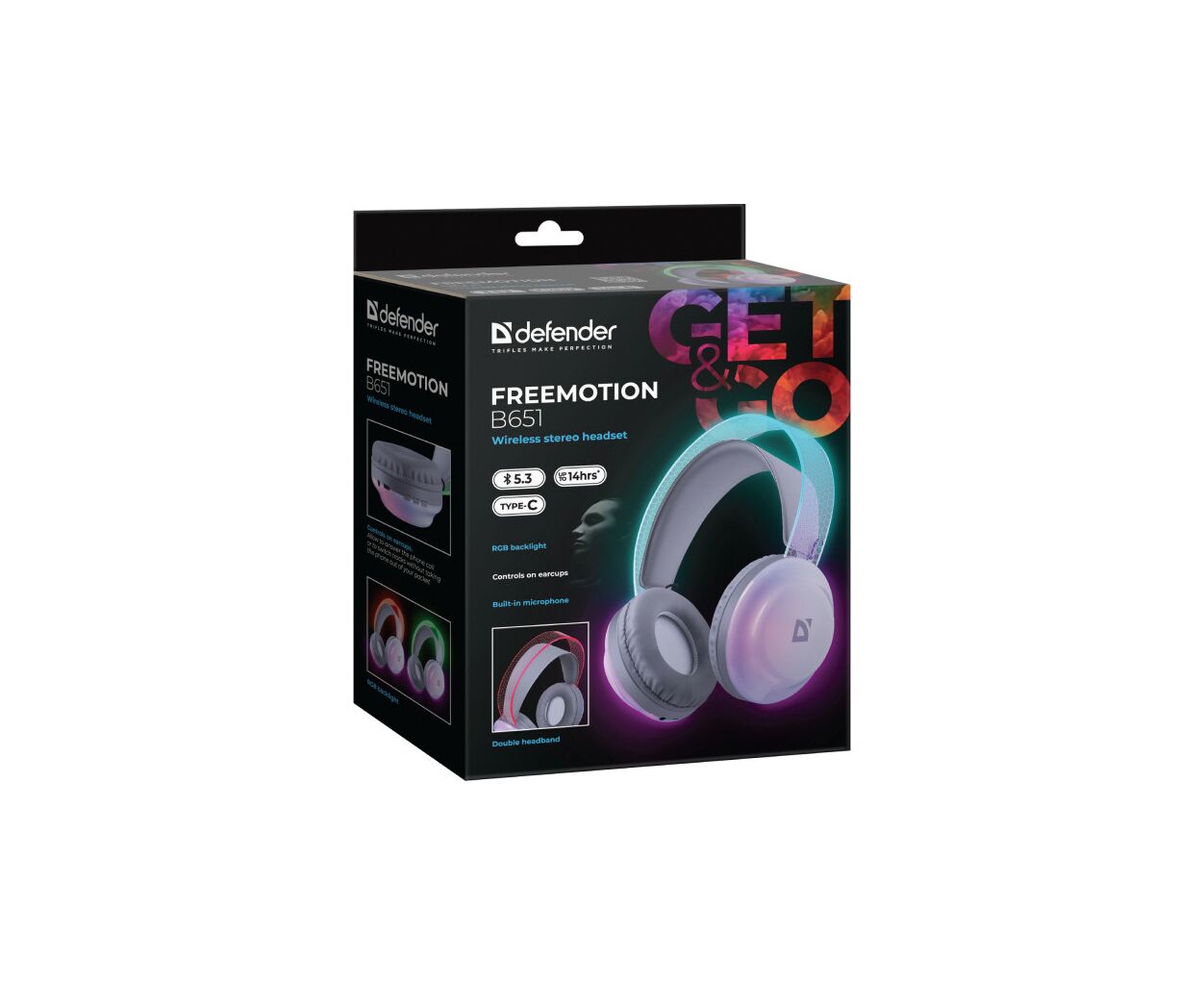 Описание Наушники Defender FreeMotion B651 Bluetooth RGB White (63651)