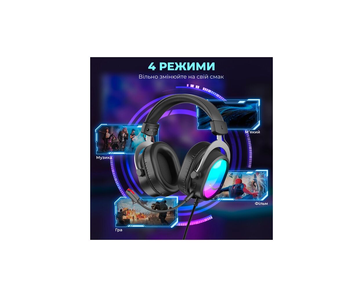 Характеристики Наушники Fifine H16 7.1 RGB Black (H16)