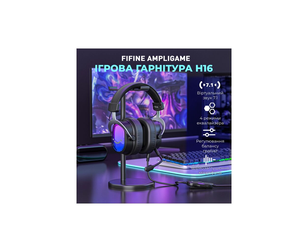 Описание Наушники Fifine H16 7.1 RGB Black (H16)