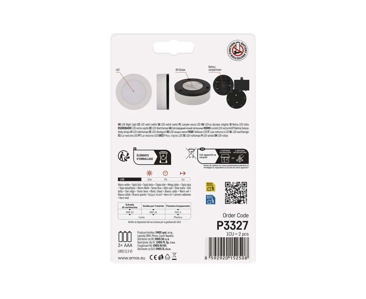 Светодиодный ночник EMOS P3327 на батарейках типа AAA (2 шт.) – практичное решение для мягкой подсветки ночью. Идеально подходит для спальни, детской или коридора. Компактное, энергоэффективное и удобное в использовании.
