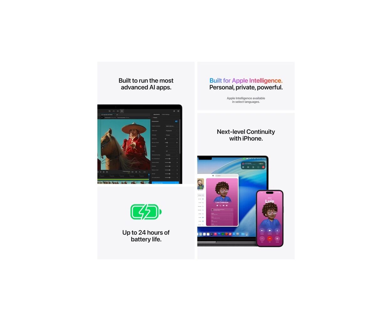 Apple silicon и каждая обеспечивающая его ключевая подсистема разработаны с учетом AI — создавая платформу, полностью объединяющую аппаратное обеспечение, программное обеспечение и экосистему. Поэтому вы можете запускать сложные задачи AI непосредственно на устройства с невероятной энергоэффективностью. И, как обычно, безопасность и конфиденциальность заложены в основу, а не добавлены позже.