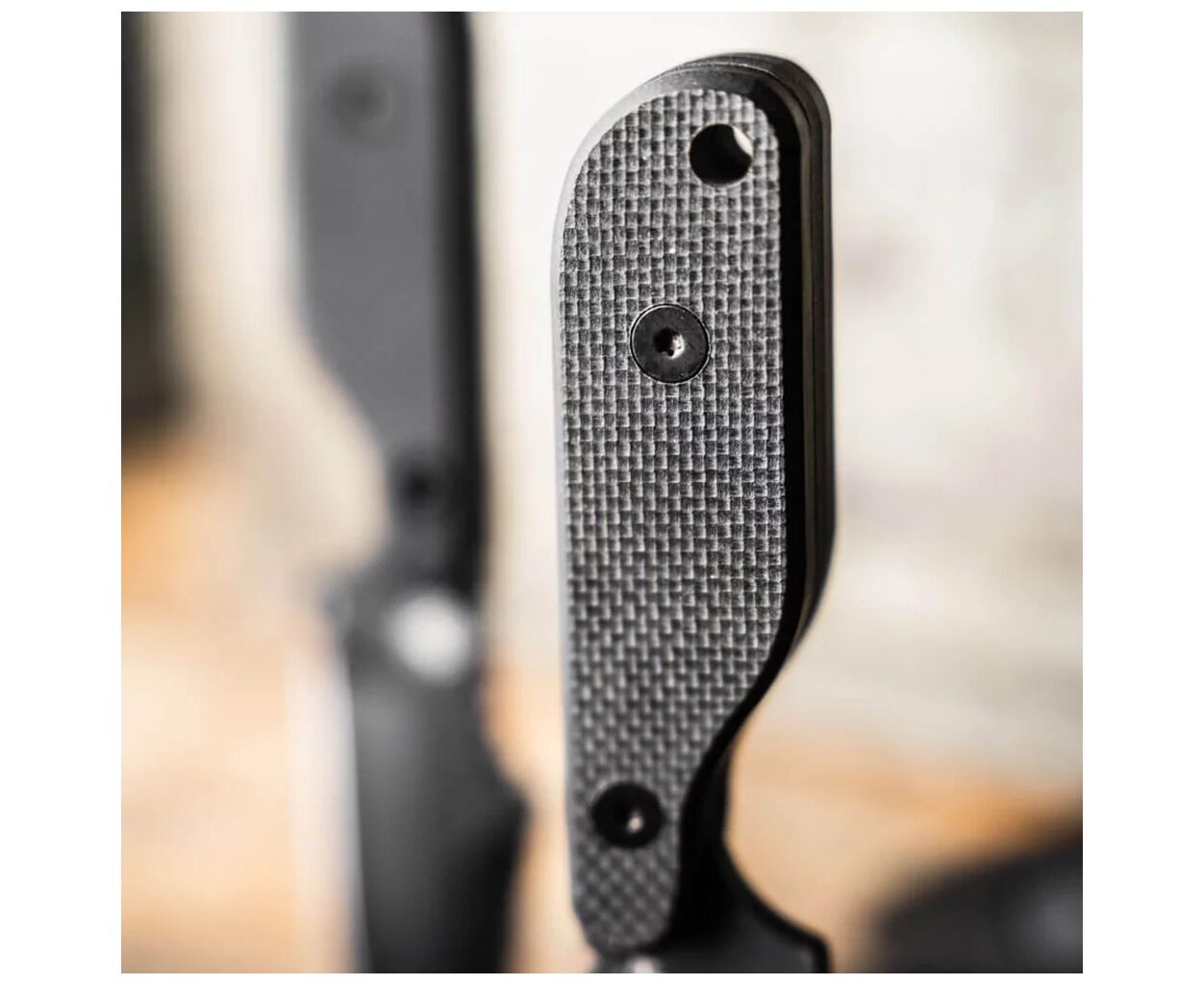 Full Tang конструкция обеспечит достаточную устойчивость во время тяжелых задач на EDC и аутдоре. Накладки рукояти изготовлены из стеклотекстолита G10 для надежного хвата даже влажными руками. На торце предусмотрено отверстие под темляк.