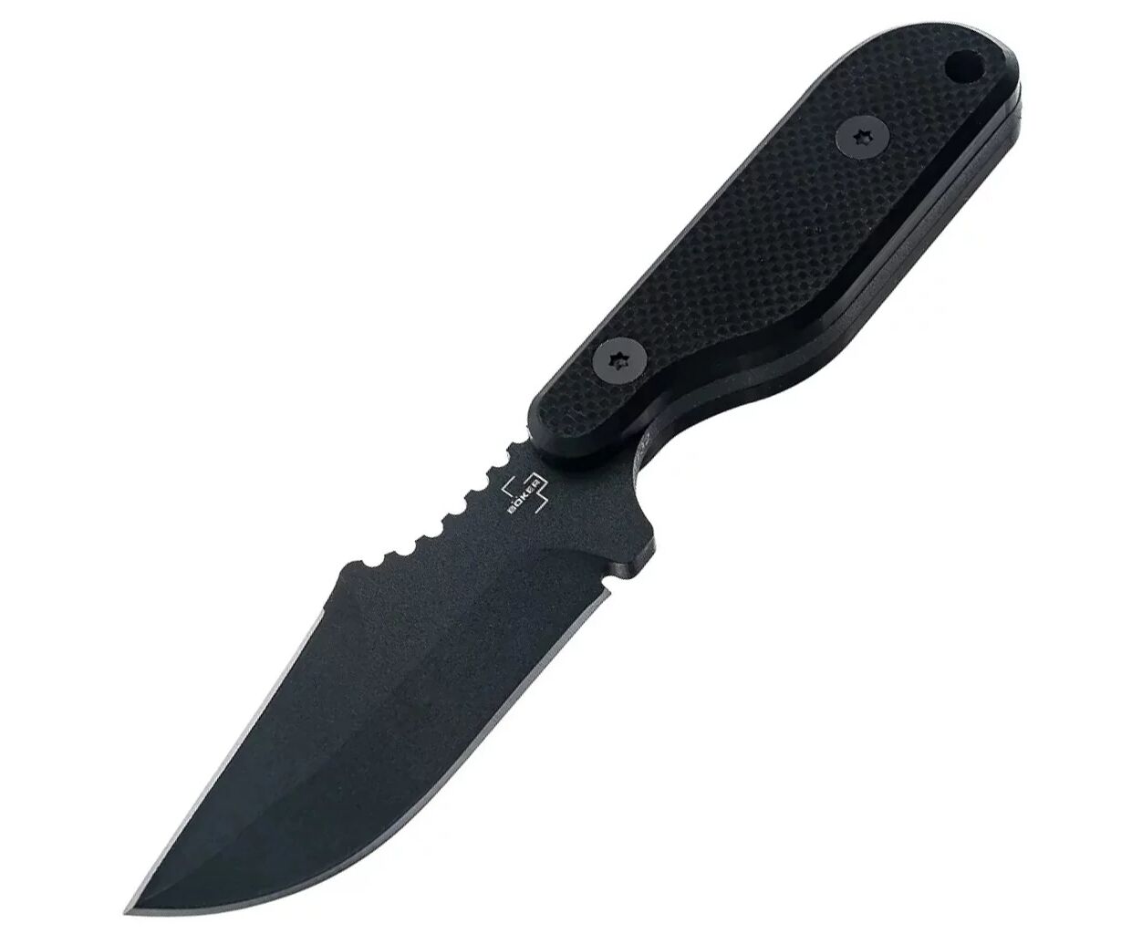 Boker Plus Kagat - это тактический фикс, созданный Boker в сотрудничестве с экспертом филиппинских боевых искусств Фрэнком Дело-младшим. Клинок изготовлен из углеродистой стали 1095 с порошковым черным покрытием, которое подчеркивает тактический характер ножа и обеспечивает дополнительную защиту от коррозии. Насечки на обухе в сочетании с профилем Harpoon обеспечат более точный и контролируемый рез и прокол.