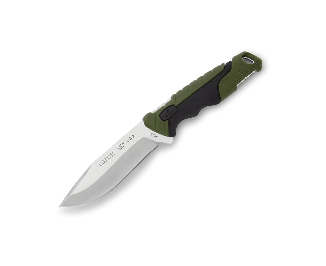 Buck Pursuit Small 658GRS - практичный складной охотничий нож. Бак уделил здесь большое внимание функциональности. Ручка сделана из комбинации FRN (нейлона, армированного стекловолокном) и Versaflex. Оба пластика, каждый из которых имеет свои уникальные особенности, объединены в этой ручке. Гибкость Versaflex и прочность FRN. Лезвие изготовлено из стали 420HC. Прочная нержавеющая сталь, которая хорошо себя зарекомендовала благодаря превосходной термообработке Пола Боса.
