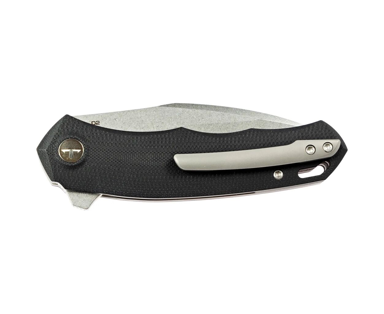 Фолдер С1 получил клинок профиля Drop Point с элементами рекурвы и изящным фальш лезом. Режущая кромка имеет сведение в 0,3 мм и толщину 3,4 мм по обуху, благодаря чему нож идеально подойдет для выполнения ежедневных задач. Также на обухе присутствует выемка для упора большим пальцем. Клинок может быть изготовлен из инструментальной стали марки D2 (59-60 HRC) или N690 (59-60 HRC). В зависимости от модели покрытие клинка может быть StoneWash или Black StoneWash.
