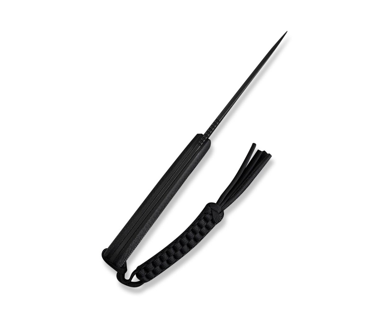 - Глубокая подпальцевая выемка на рукояти с четким упором под указательный палец предотвращает соскальзывание ладони на лезвие. Закругленные края рукояти исключают точки давления, позволяя работать в течение длительного времени без натирания руки. В хвосте рукояти закреплен темляк из паракорда.