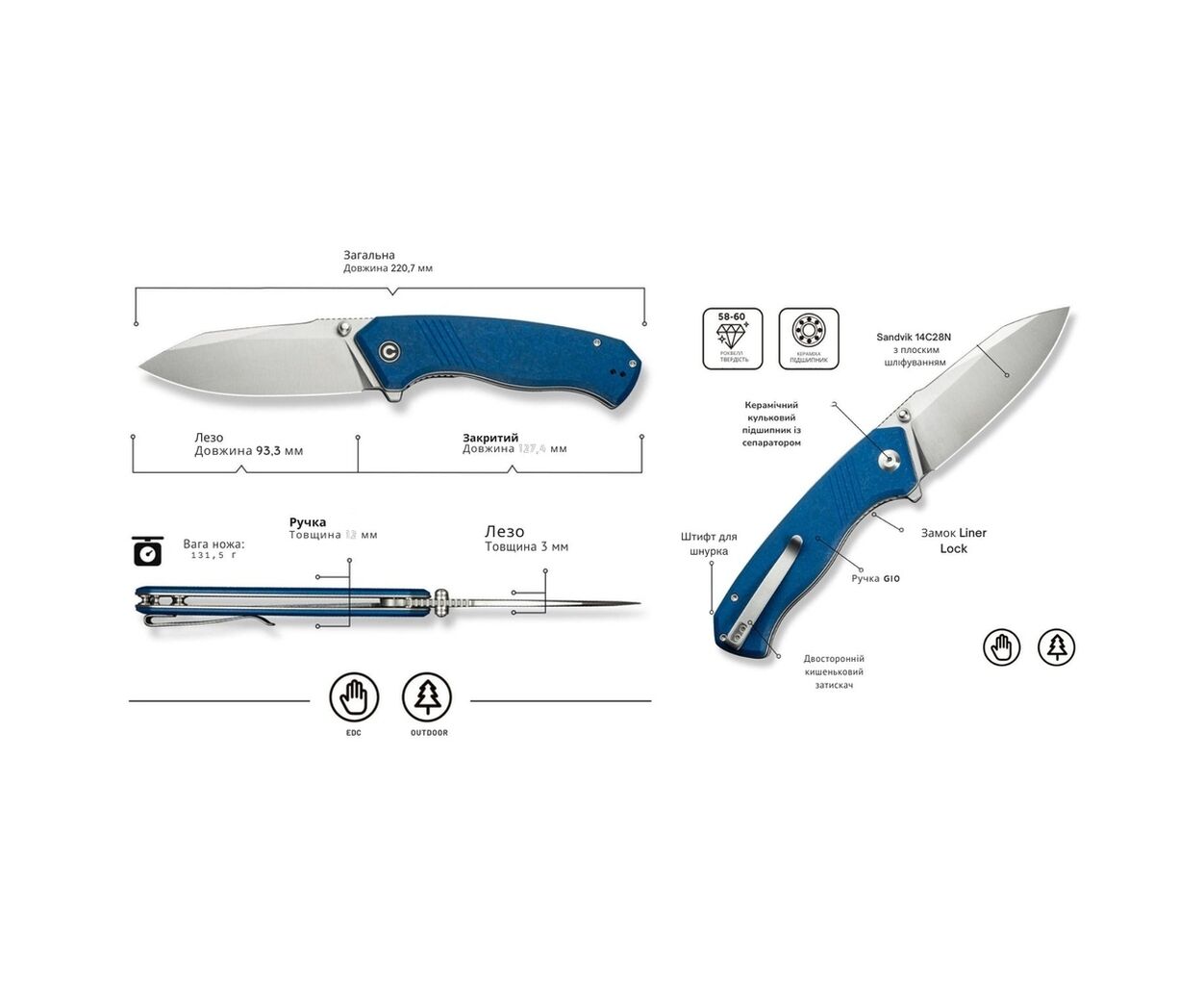 Нож Civivi Placoid, Blue G10, Satin (C23079-2)