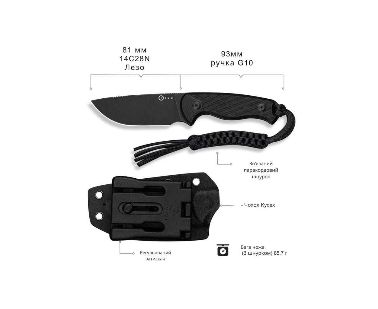 Описание Нож Civivi Timberbark, Darkwash, чорний G10 (C23094-1)