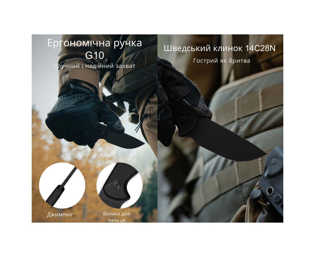 охотничий, рыбацкий, туристический, тактический, с фиксированным клинком, Sandvik-14C28N, 94.7 г, черный