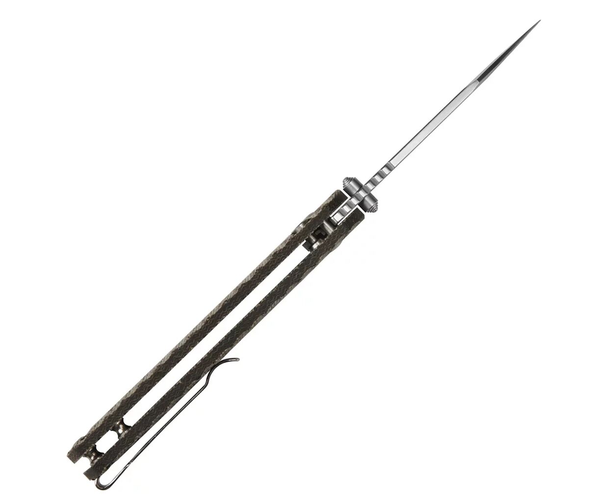 В даном случае спуски начинаются ⅔ от обуха, общая длина клинка составляет 80 мм при толщине в 2.7 мм, геометрия клинка обусловливает уклон в сторону прокалывающих работ, тем не менее режущие качества полностью закрывают потребности сферы EDC.