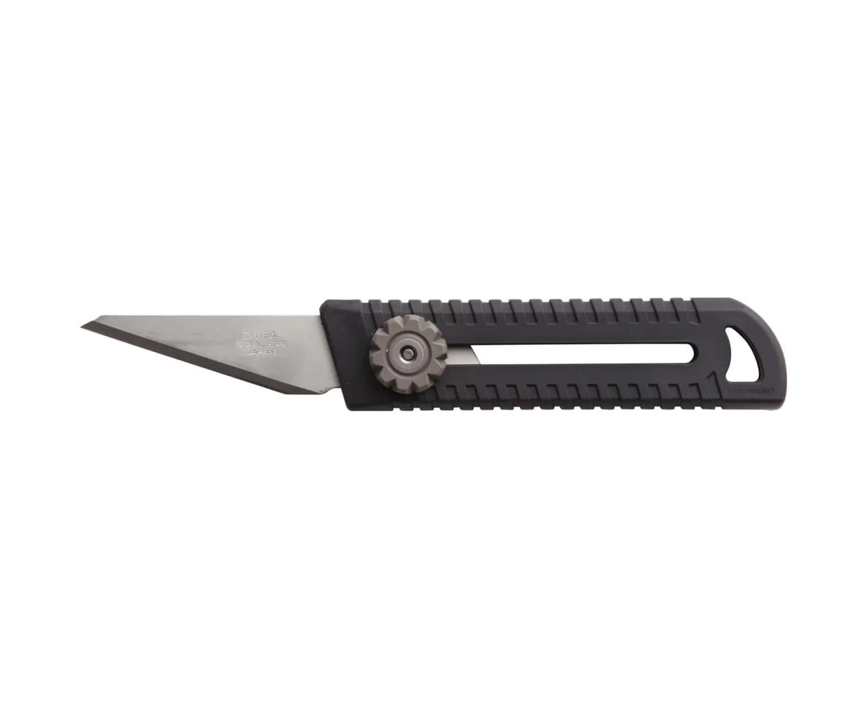 Нож DaiichiSeiko MC Knife #55 имеет небольшие габариты, подойдет для использования на рыбалке и в походах. Лезвие выполнено из нержавеющей стали, а рукоятка изготовлена из армированного стекловолокна. Нож имеет складывающуюся конструкцию, сбоку на рукоятке расположен винт (стилизованная гайка), который фиксирует выдвижное лезвие. Для удобства пользования устанавливать винт можно как на правую, так и на левую сторону. Главным преимуществом ножа DaiichiSeiko MC Knife #55, является то, что лезвия сменные (докупаются отдельно).